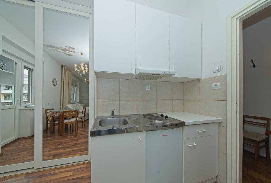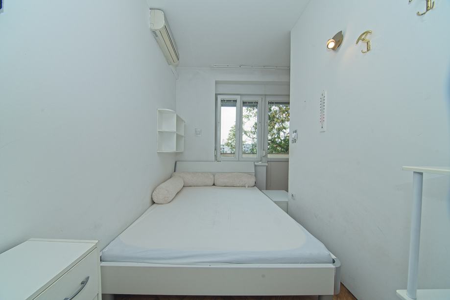 Stan je potpuno adaptiran. Unutrašnjost stana opremljena je namještajem po mjeri, kuhinja je kuhinjski blok i elementi za pohranu stvari.