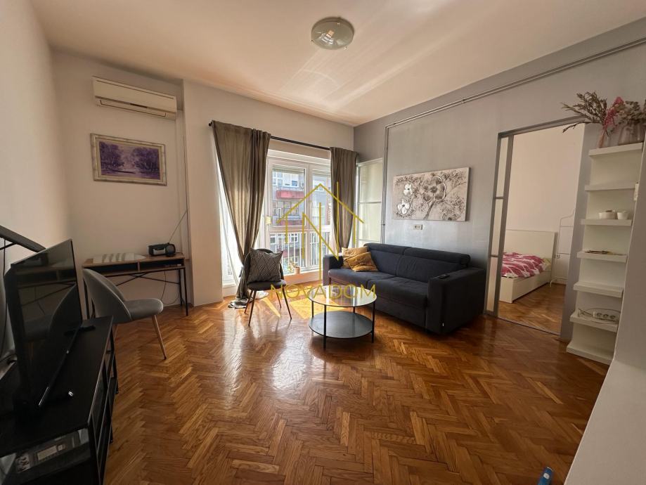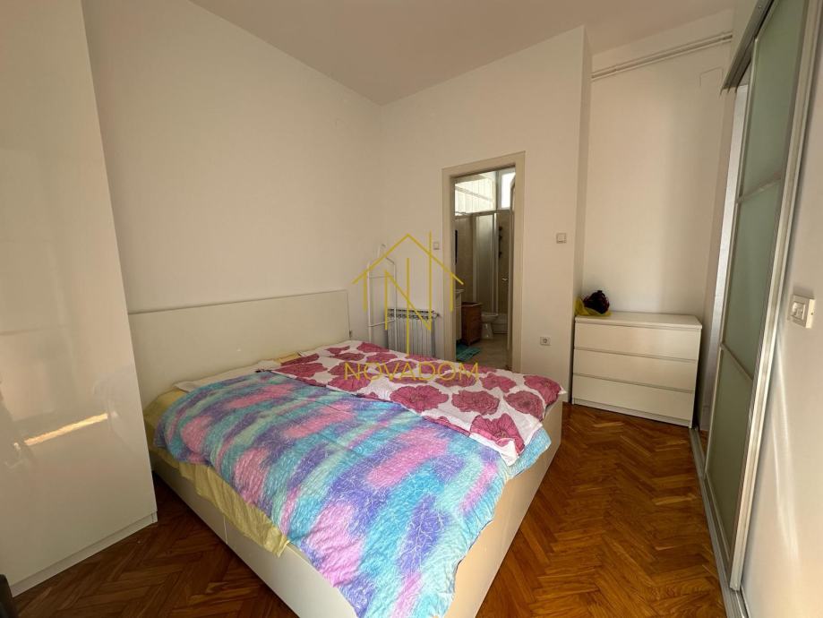 U centru Zagreba iznajmljuje se lijep i svijetao te opremljen i namješten 2s stan južne orijentacije od 45 m2 na trećem katu (bez lifta) kvalitetne stambene zgrade starije gradnje. Stan se nalazi u dvorišnoj zgradi stoga je bitno naglasiti kako je pozicija istog u miru i tišini. Stan se sastoji od: hodnika, dnevnog boravka, kuhinje, spavaće sobe sa kupaonom te zasebnog wc-a. Zgrada ima vlastiti parking pod rampom.