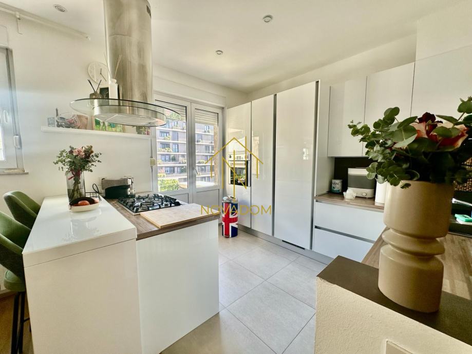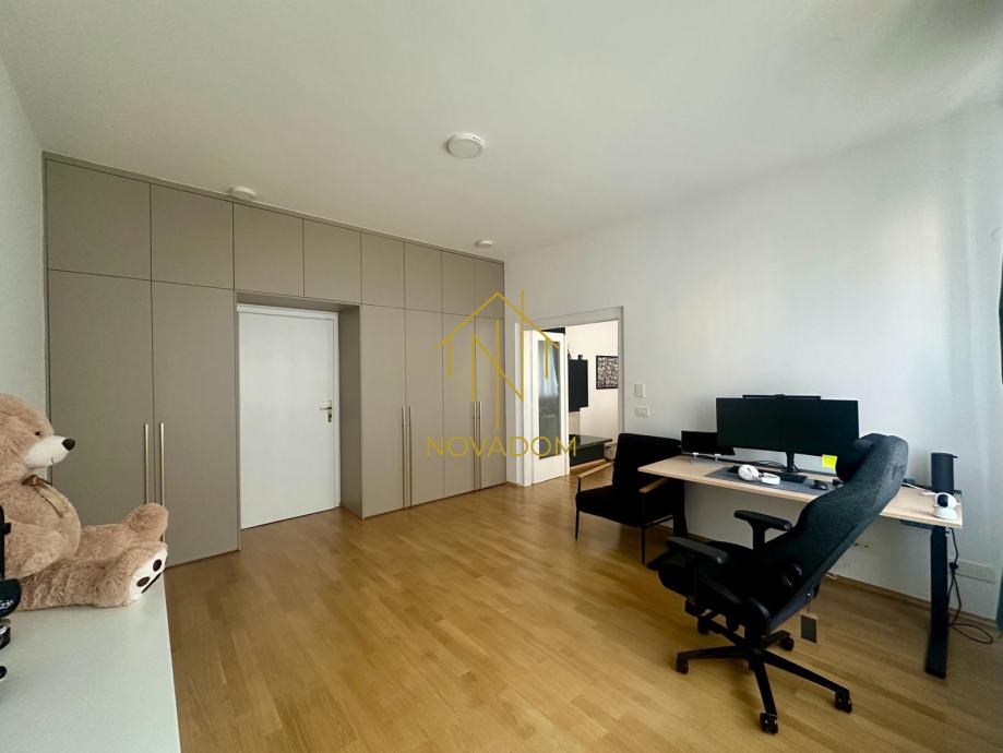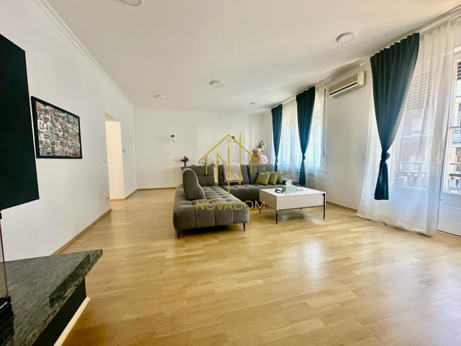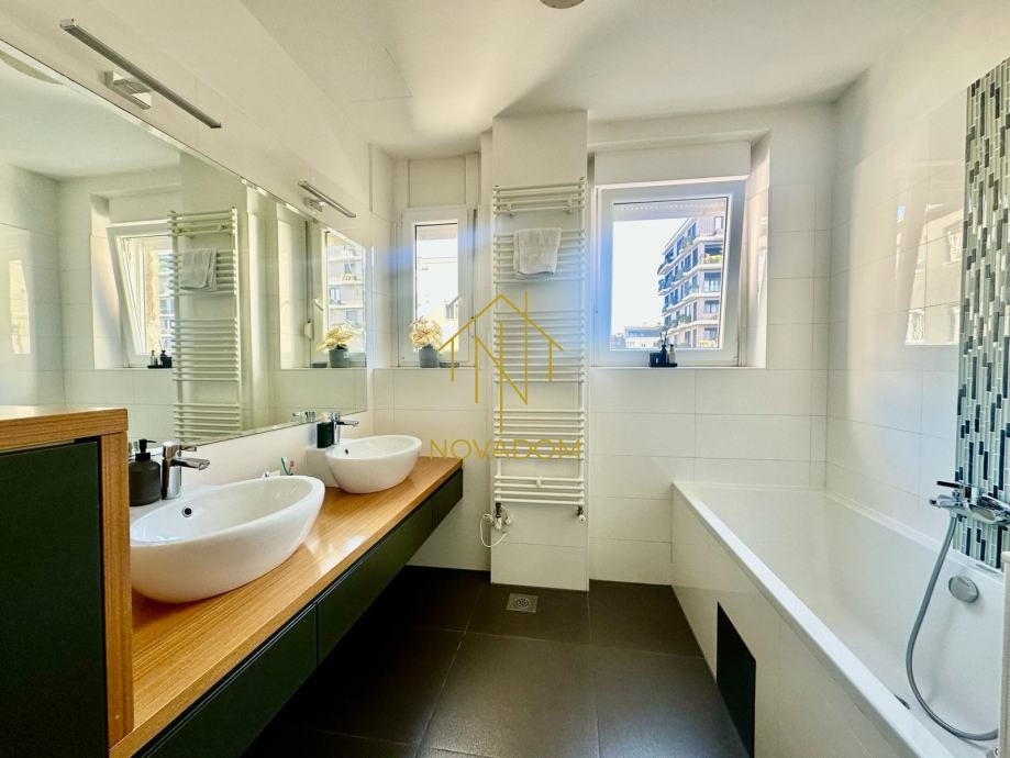 Iznajmljuje se prostran, moderno uređen i iznimno kvalitetno opremljen 3s stan južno-istočne orijentacije od 125 m² na III katu kvalitetne stambene zgrade s liftom, dvorišno orijentiran što pruža mir i tišinu.