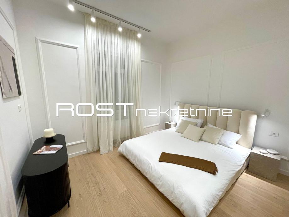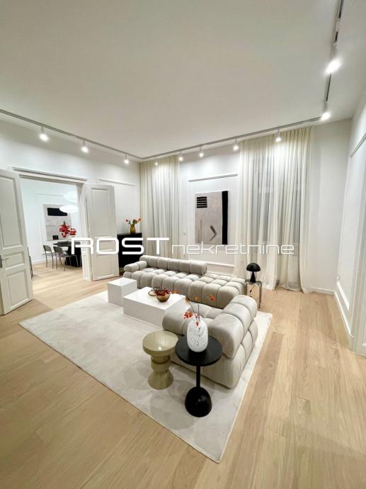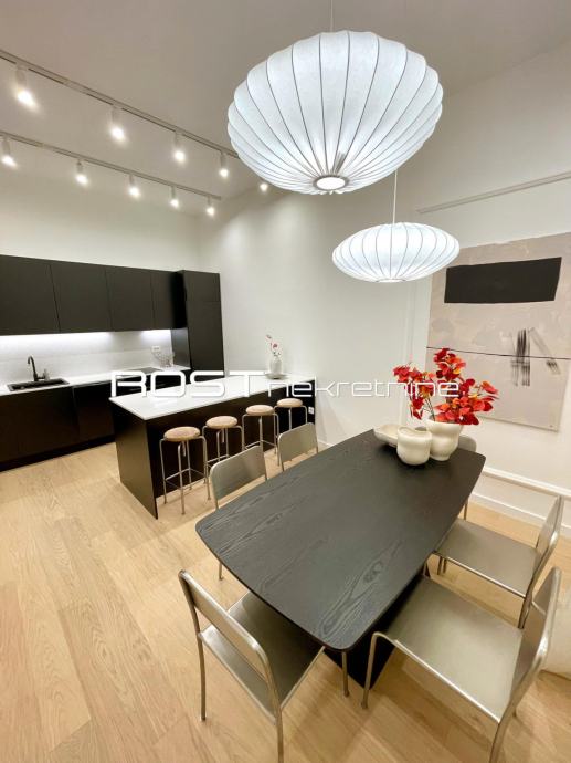 Stan je opremljen dizajnerskim namještajem, opremom i dekorima. Ugrađena je atraktivna stropna rasvjeta a prilikom adaptacije su korišteni najmoderniji materijali.