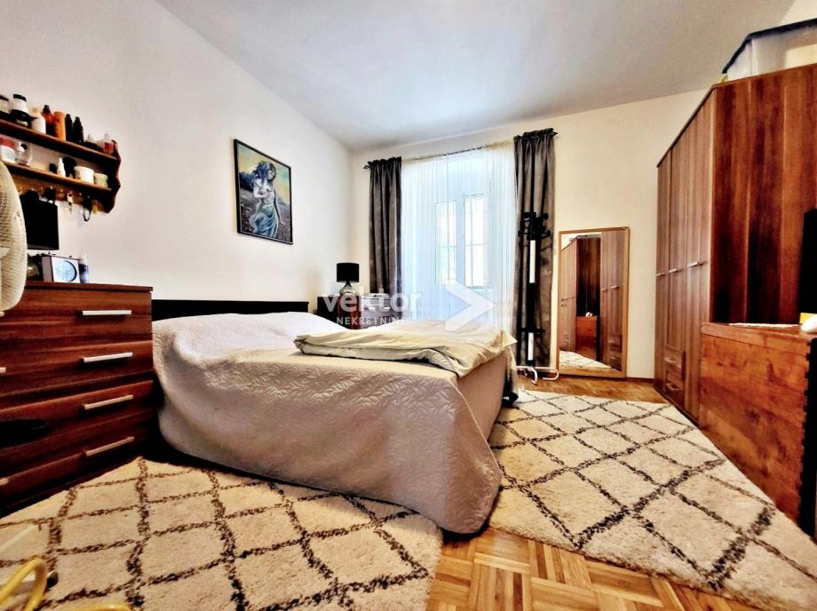 U 82m2 izvedene ja manja kuhinja, hodnik, dvije sobe, predsoblje, blagovaona i dnevni boravak. Posebnost ovoga stana je velika, lijepa terasa na koju se izlazi iz kuhinje, dnevnog boravka i jedne sobe. Terasa nije u vlasništvu, ali stanari imaju dogovor oko korištenja i svakom od tri stana pripada jedan ograđeni dio.