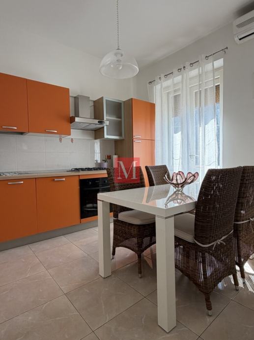 Stan je kompletno renoviran te se sastoji se od hodnika, kuhinje sa blagovaonicom, ostave, dvije spavaće sobe, prostranog dnevnog boravka, kupaonice i odvojenog WC-a te malog balkona.