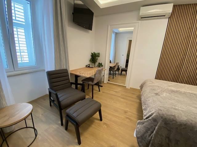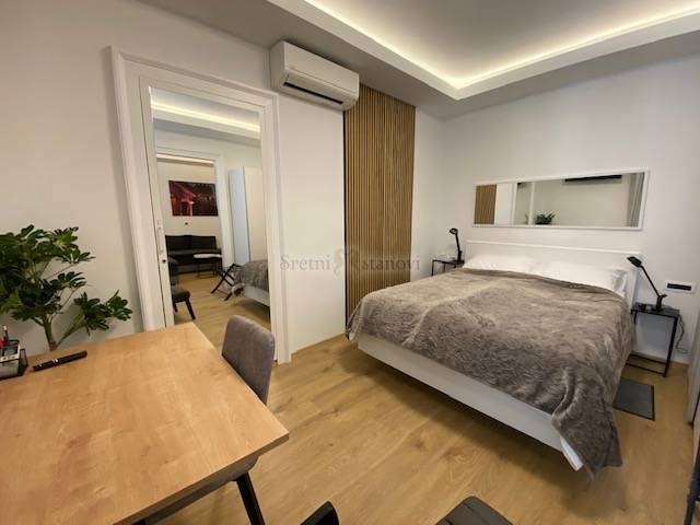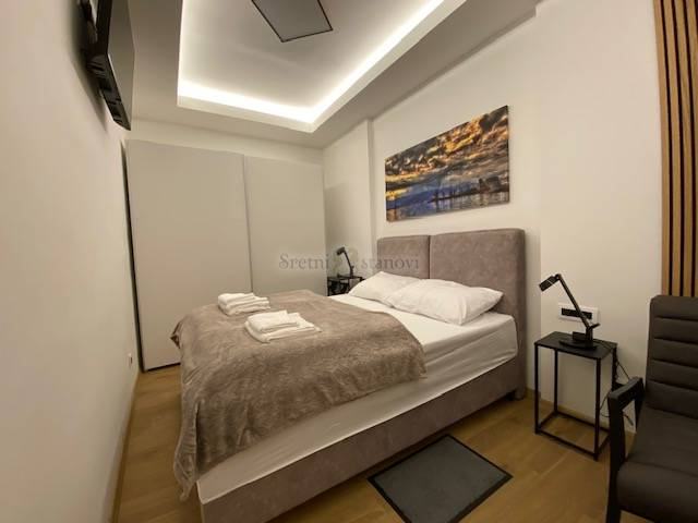Lijepo, moderno i funkcionalno, novouređeni stan u strogom centru grada, nalazi se na drugom katu zgrade. Sastoji se od dvije spavaće sobe sa izuzetno udobnim krevetima, moderne kupaone sa perilicom i sušiicom rublja, dodatnog wc-a, potpuno opremljene kuhinje s perilicom suđa, jedaćeg dijela, prekrasnog dnevnog boravka i ulaznog halla s garderobom. Cijeli stan je klimatiziran modernim klimmama Mitsubishi. Internet je aktivan. Režije se plaćaju posebno. Traže se Dva depozita kao polog. Ugovor o najmu se solemnizira.