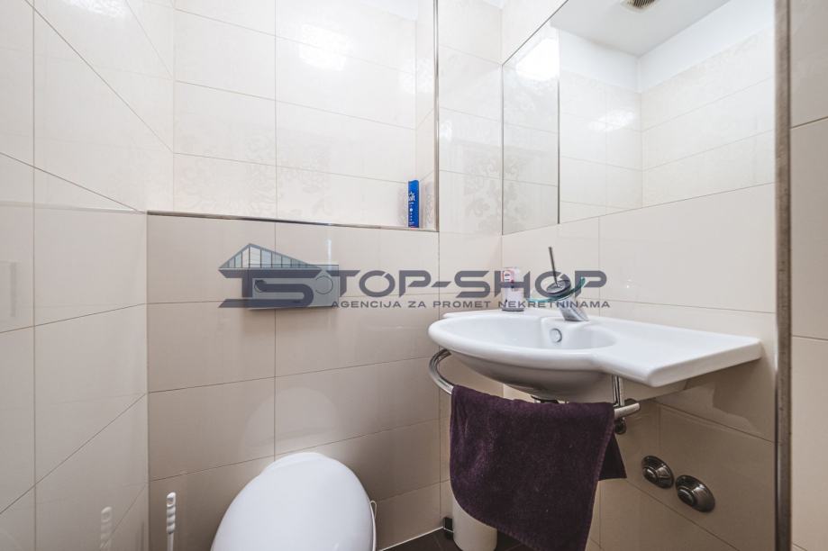 U prizemlju kuće nalazi se i poslovni prostor koji je trenutno u najmu za restoran, ukupne površine 98 m2.
