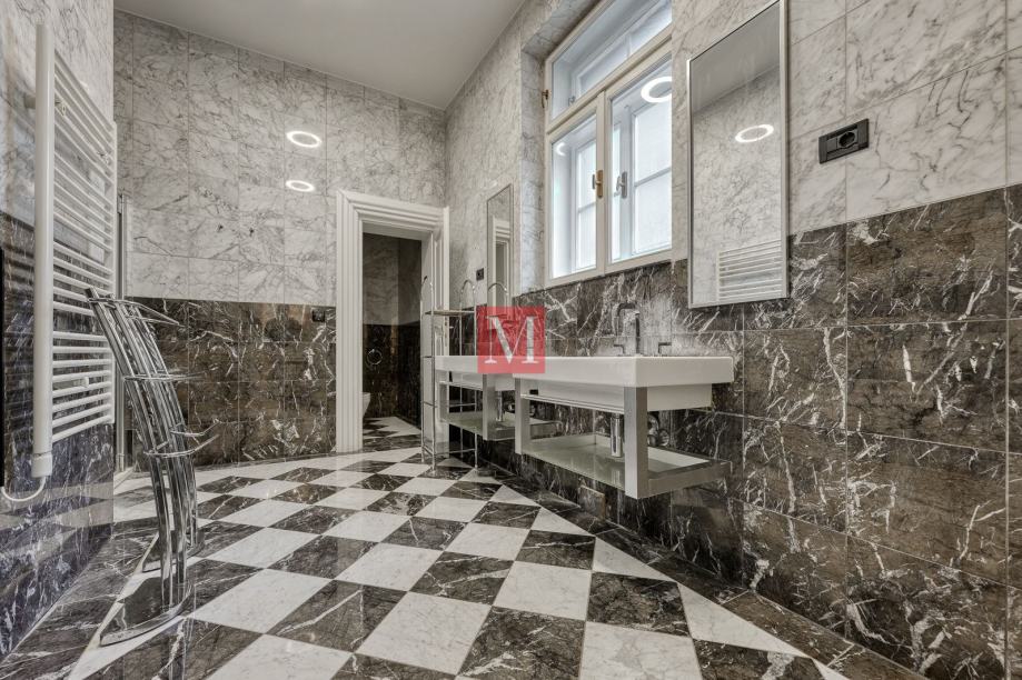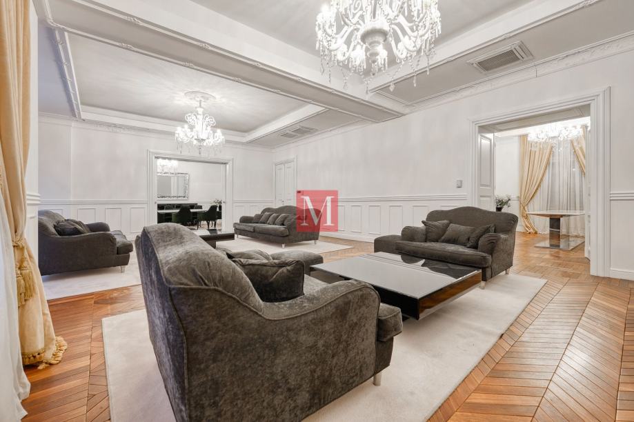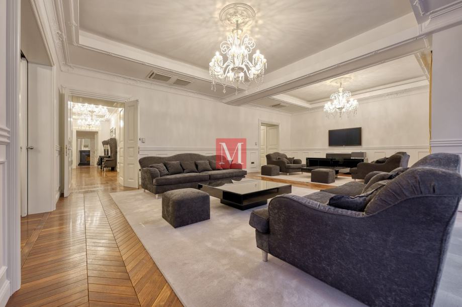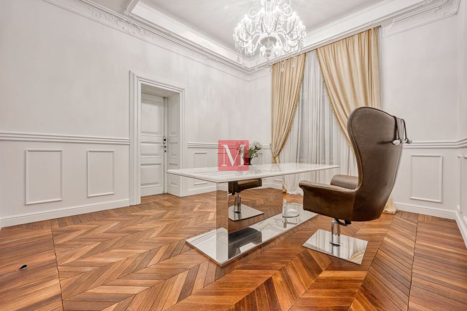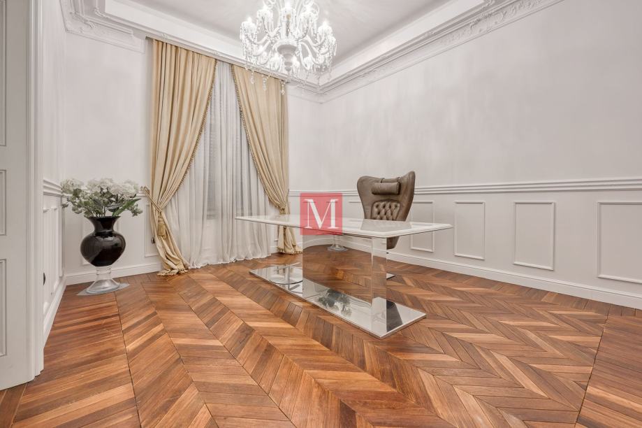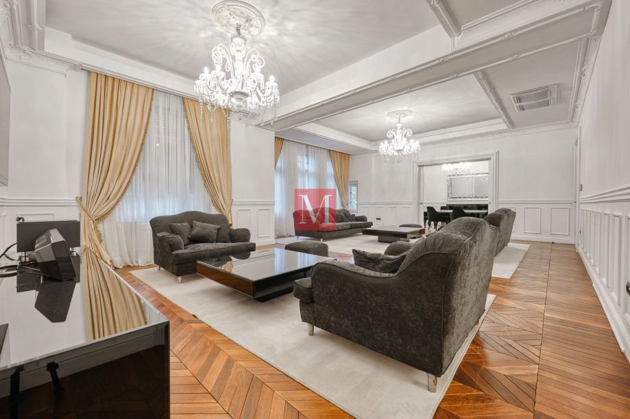 Luksuzan 5s stan površine 273m2 koji se prostire duž cijelog 2. kata zgrade u mirnom dijelu strogog centra Zagreba, sa pogledom na park.
