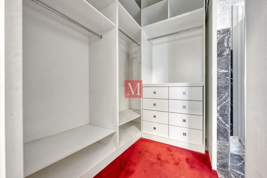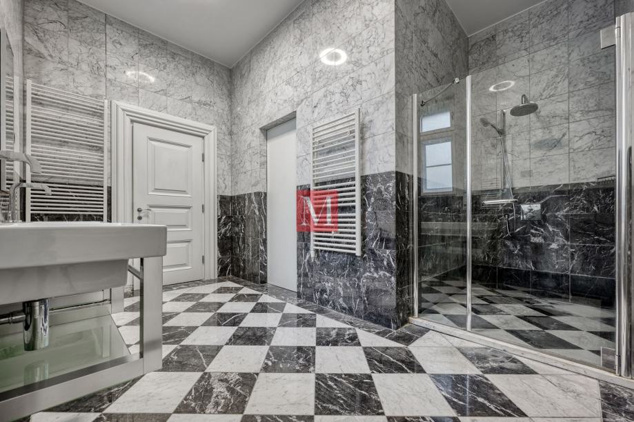 Stan je u potpunosti renoviran; stropovi su spušteni na 345cm, ugrađena je nova stolarija, kvalitetni parketi, kamen u kuhinji i kupaonicama, te dizajnerska rasvjeta u cijelom stanu.