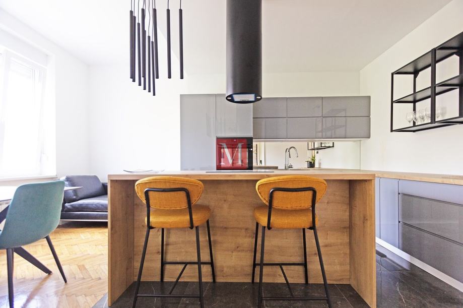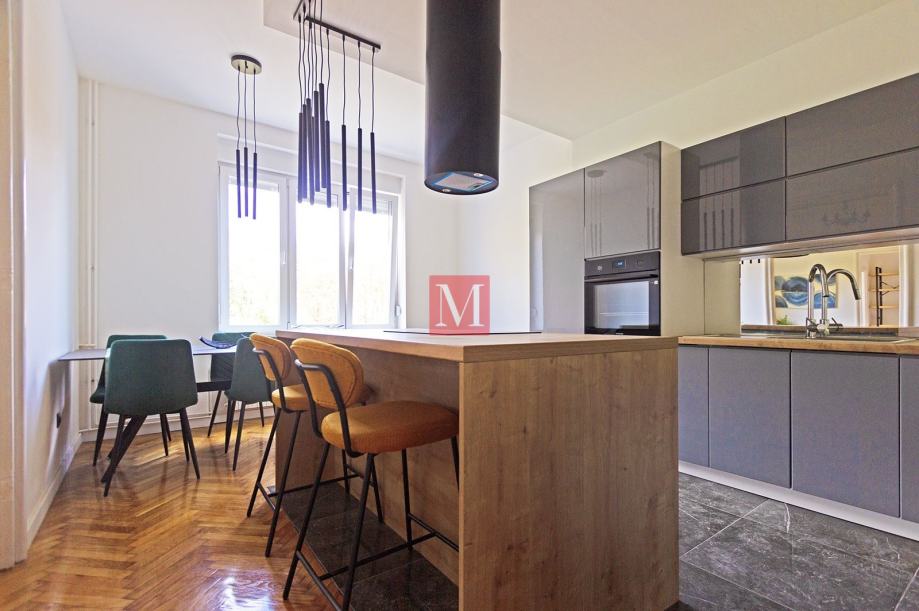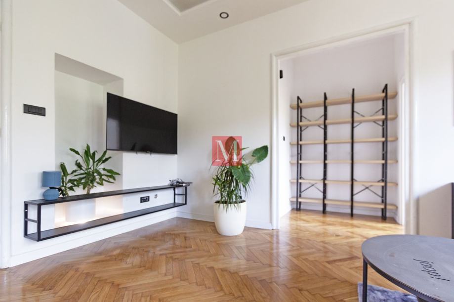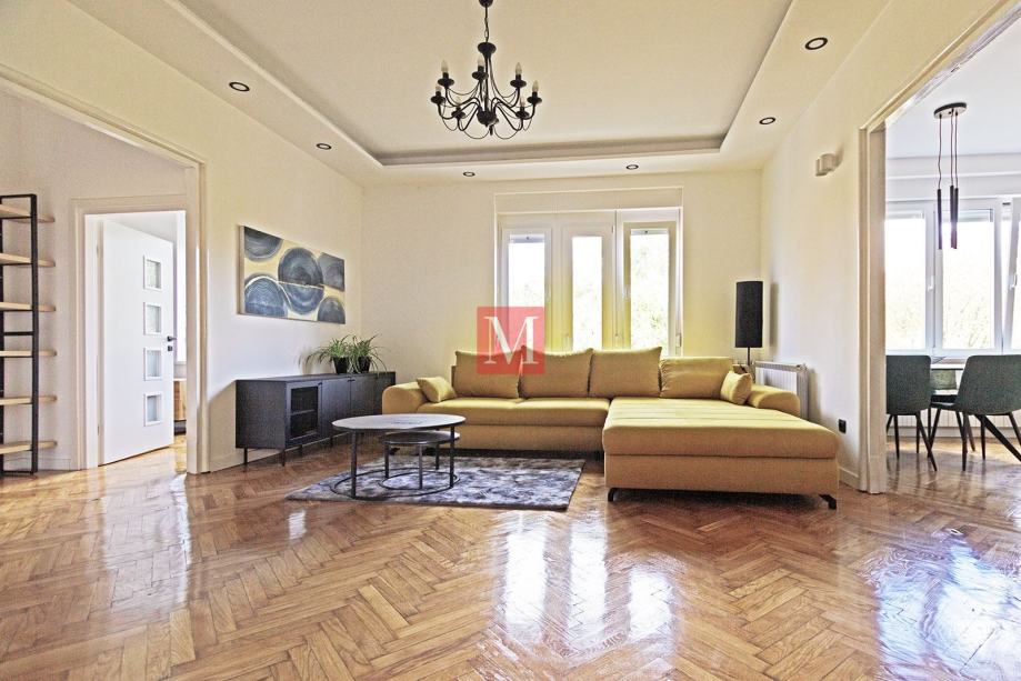 Luksuzan, potpuno uređen 3S stan od 100m2 s loggiama, smješten u atraktivnom dijelu Zagreba - Medveščak, u neposrednoj blizini centra.
