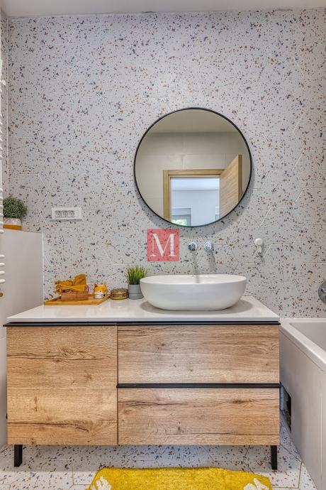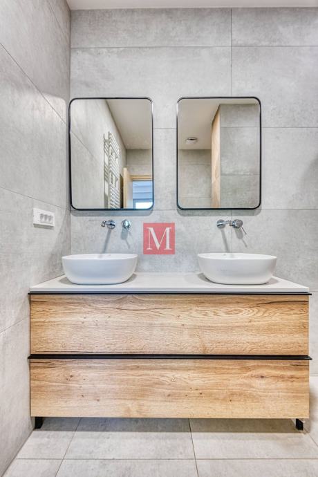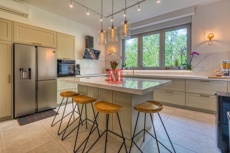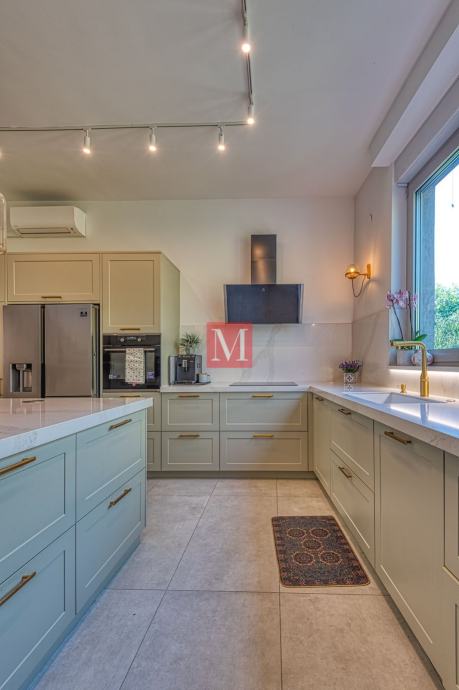 Pri uređenju korišteni su najkvalitetniji materijali i oprema visoke klase. Dizajnerski opremljene kupaonice s vrhunskim sanitarijama (GROHE), parket A klase, kuhinja i ogradbeni ormari rađeni po mjeri. Etažno plinsko grijanje s visokokvalitetnim radijatorima (smart home sustav), kamin, klima (Daikin), sustav za pročišćavanje i omekšavanje vode. Svjetla i rolete povezani su smart home sustavom i kontroliraju se putem aplikacije ili Amazon Alexa sustava.