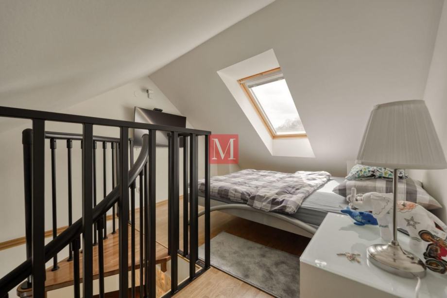 gornja etaža (potkrovlje): 4 spavaće sobe, 2 kupaonice i galerija