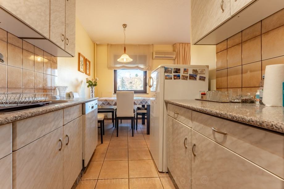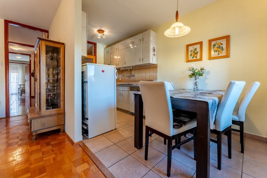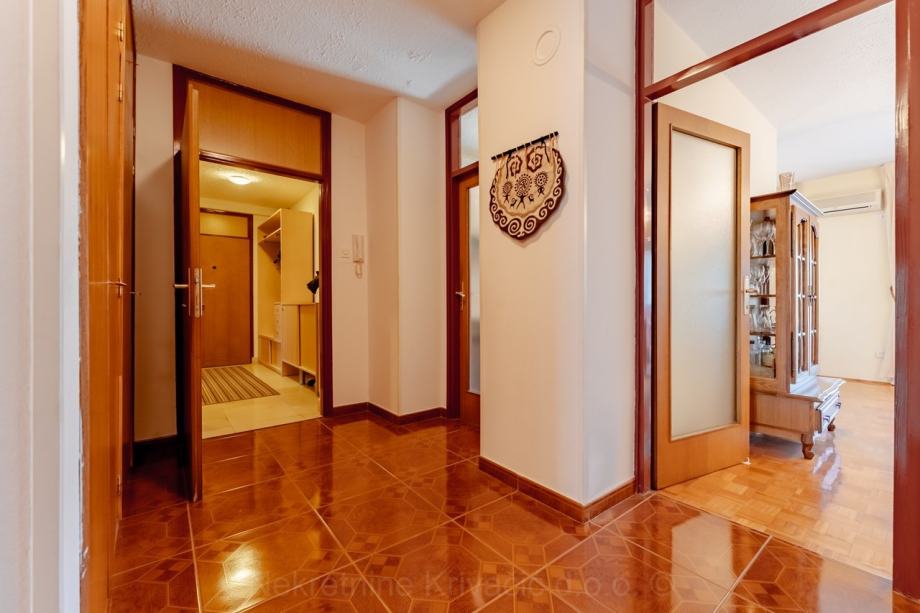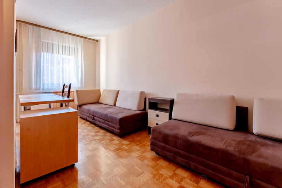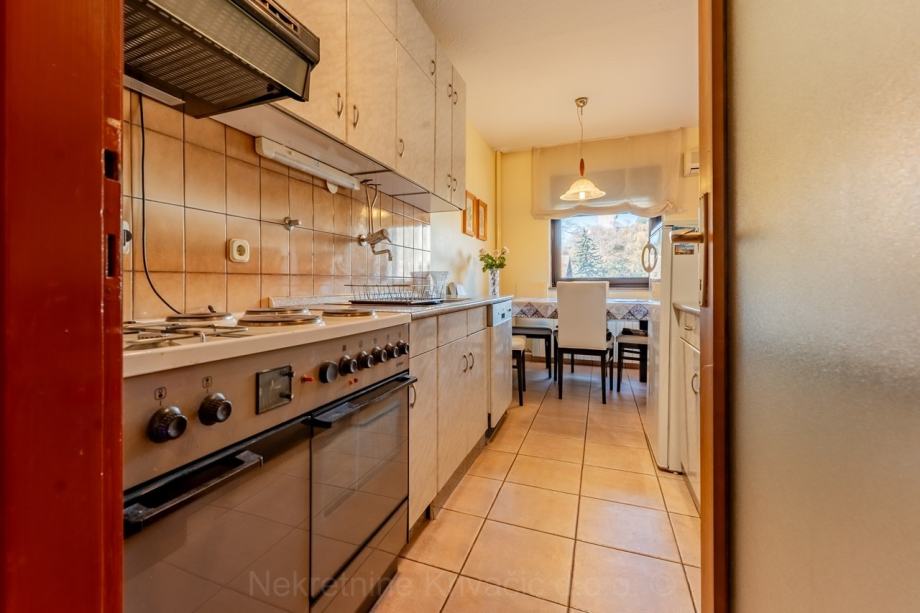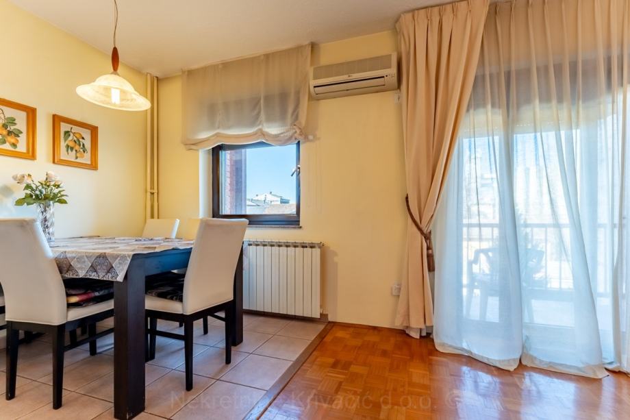 Ostatak stana dnevni je boravak spojen s blagovaonicom i kuhinjom, te prostranim balkonom na istočnoj strani gdje se pruža pogled na mirno dvorište s parkom. Nastavak stana čine smočnica, odvojeni wc, zasebna kupaonica, te dvije spavaće sobe od kojih jedna ima i balkon na zapadnoj strani, te pogled na zelenilo i park također u mirnom okruženju.