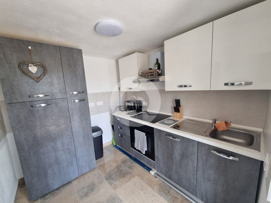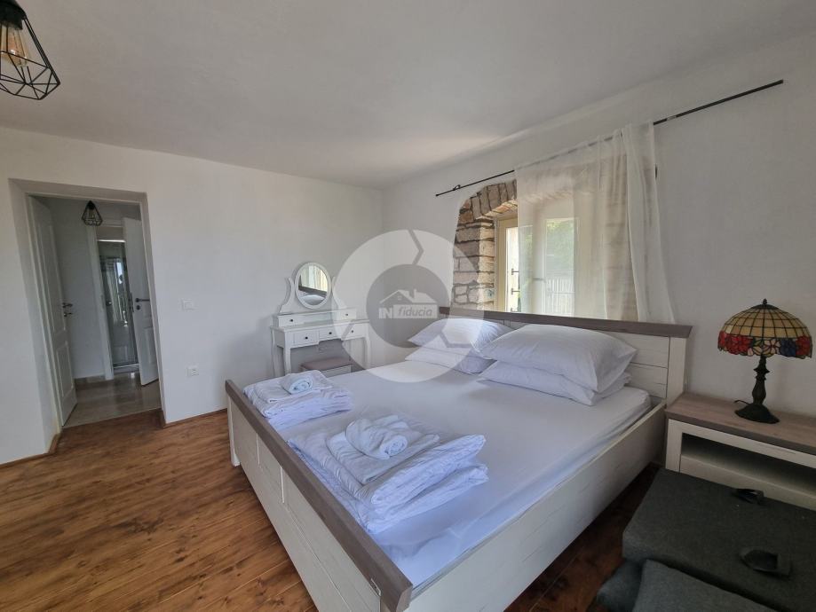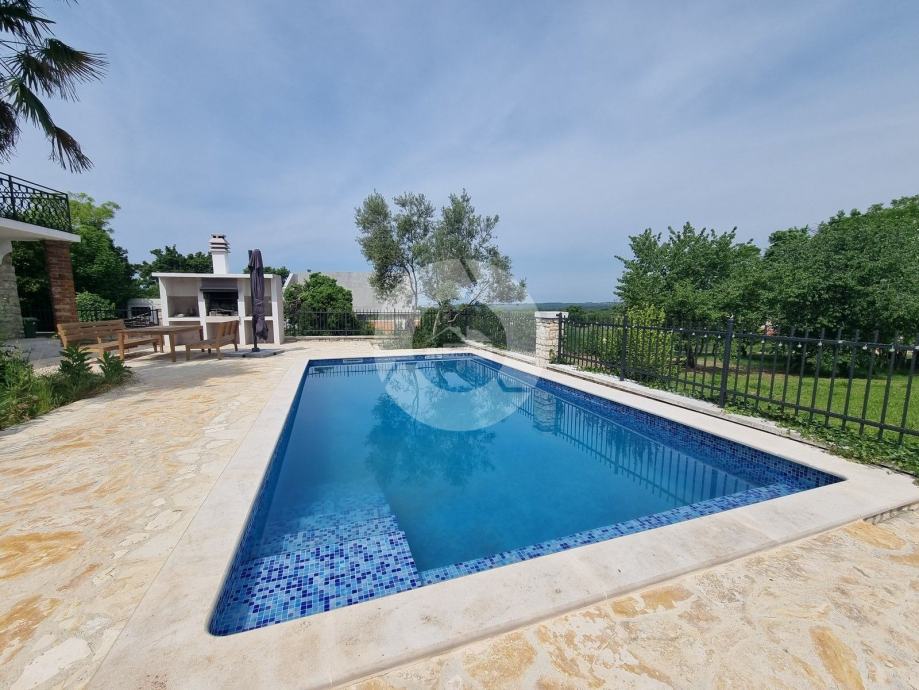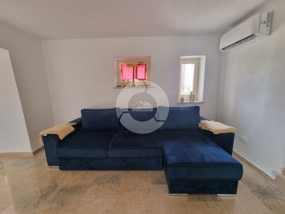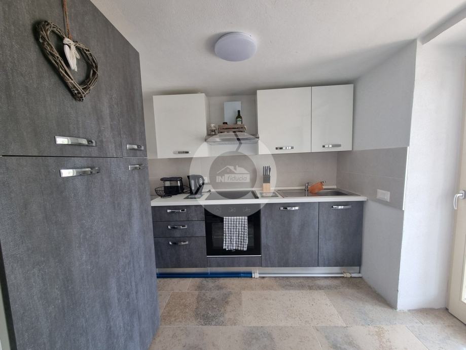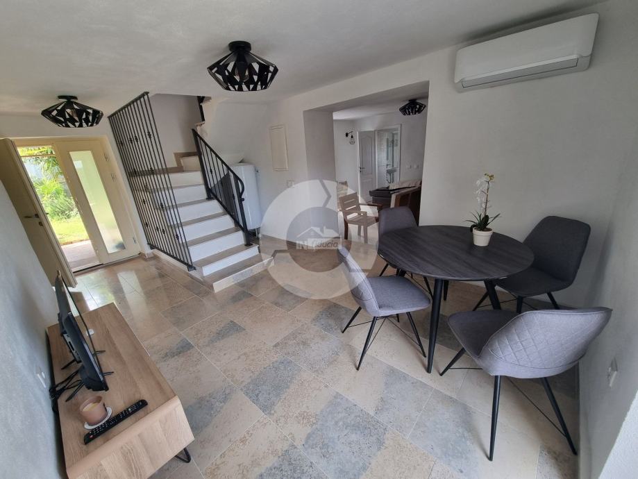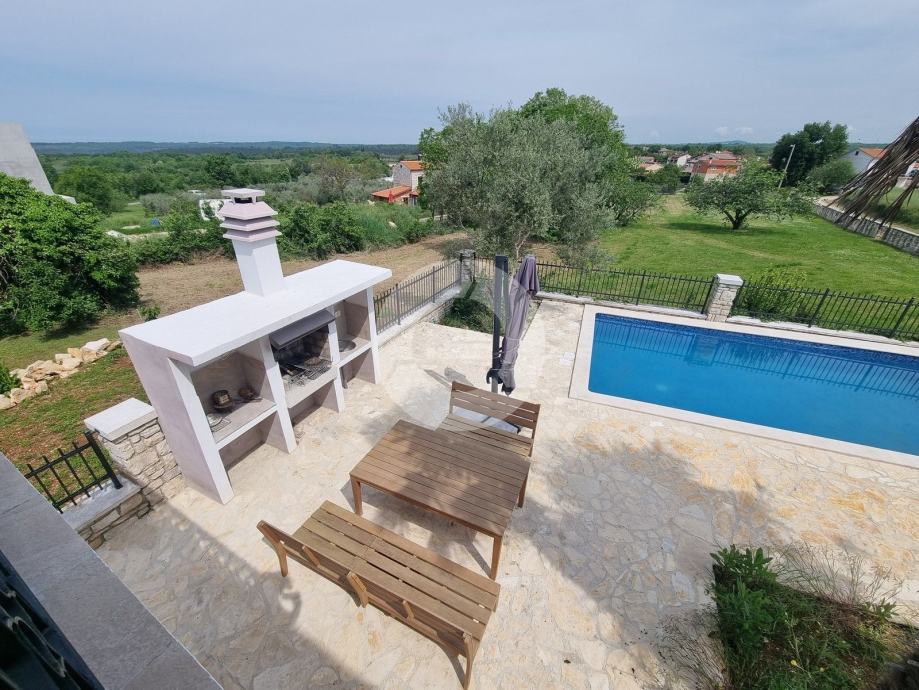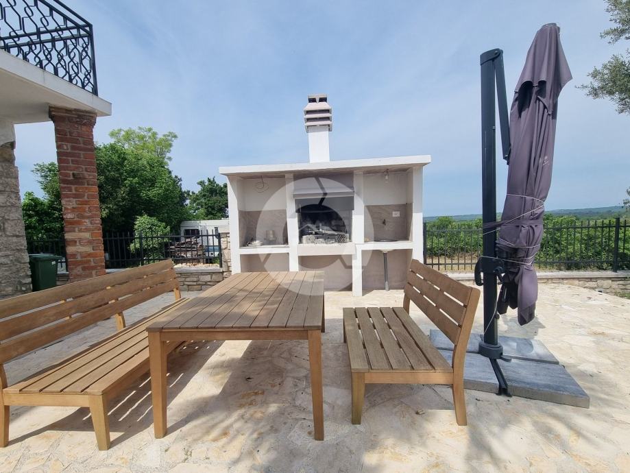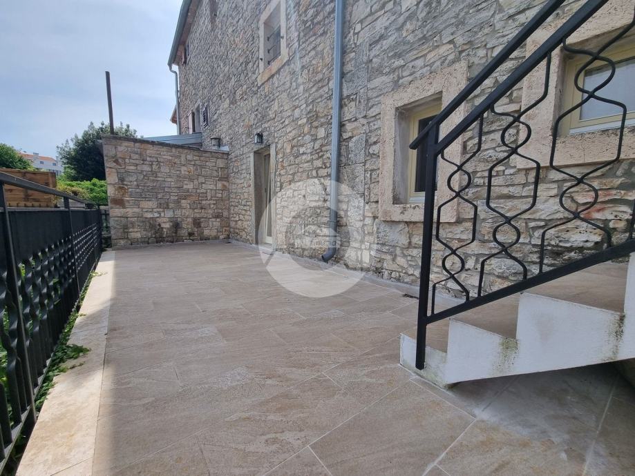 Šarmantna kamena ljepotica nalazi se u centru malog istarskog gradića nadohvat svih sadržaja, svega 3 km od uređenih plaža. Kuća nije samostojeća, veže se samo jednom stranom uz drugu kuću. Kuća je izgrađena prije 1968 godine a renovirana je 2022. godine, te opremljena namještajem i opremom. U vrtu postoji i bazen, te vanjski roštilj i parkirna mjesta. Sastoji se od tri etaže: prizemlja, prvog kata i visokog potkrovlja. U prizemlju se nalazi blagovaone, kuhinja, veliki dnevni boravak sa kamenom te kupaona. Unutarnjim stepenicama se odlazi na kat gdje su dvije spavaće sobe (jedna veća i jedna manja), te kupaona. Iz veće sobe se izlazi na prostran balkon sa kojeg se pruža otvoreni pogled na more i prirodu, a povezan je vanjskim stepenicama i sa vrtom. U visokom potkrvolju su još dvije spavaće sobe (jedna veća i jedna manja, bez terase), i kupatilo. Grijanje/hlađenje regulirano je klima uređajima, dok u dnevnog boravku postoji kamin za zimski ugođaj. Kuća se prodaje sa namještajem i opremom!