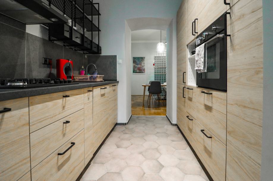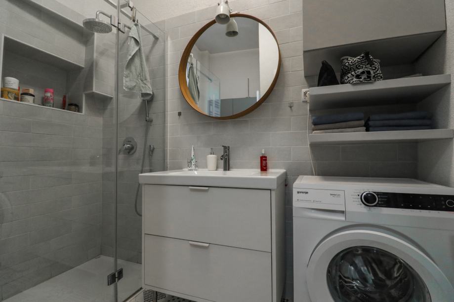 Sastoji se od ulaznog hodnika, dnevnog boravka, kupaonice, blagovaonskog dijela, balkona, kuhinje i spavaće sobe. Stanu pripada spremište u podrumu zgrade, a stanari mogu koristiti vrlo lijepo zajedničko dvorište.