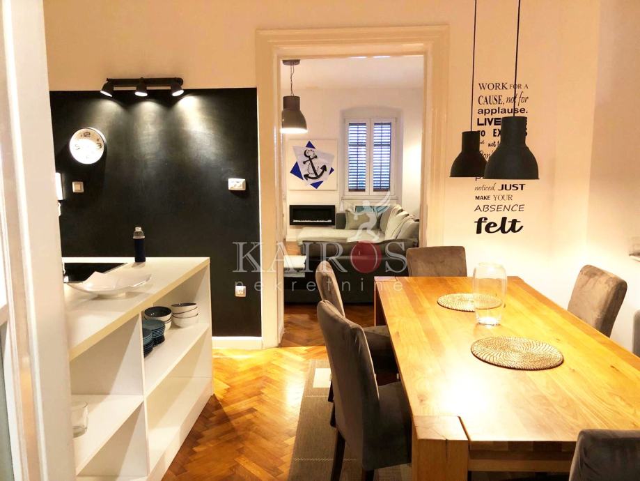 U strogom centru Rijeke, iznajmljujemo komforan stan površine 109 m2, u naravi dvosoban s dnevnim boravkom, na 3. katu stambene zgrade.