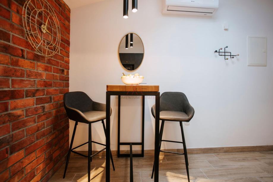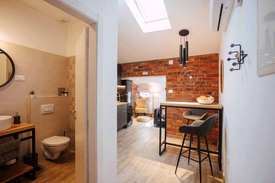 Iznajmljuje se jednosoban, moderno uređen stan s terasom u strogom centru Rijeke, na period od 9 mjeseci. Stan je slobodan od 29.09.2025. do 30.06.2026,
