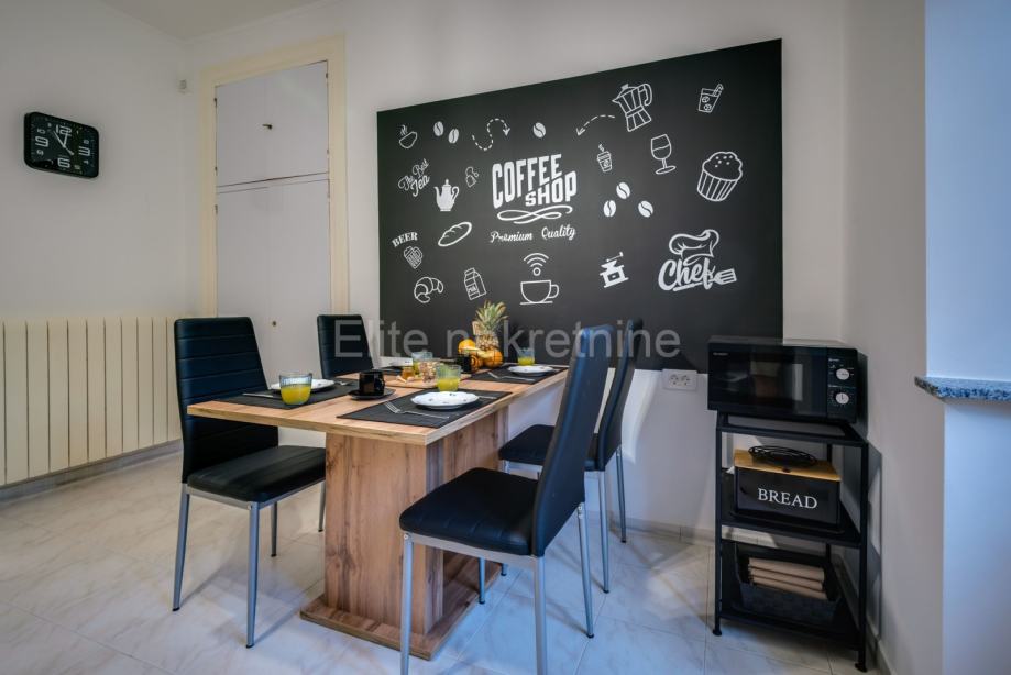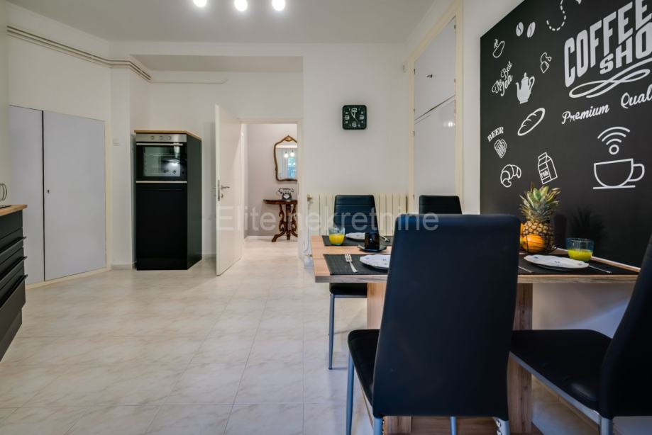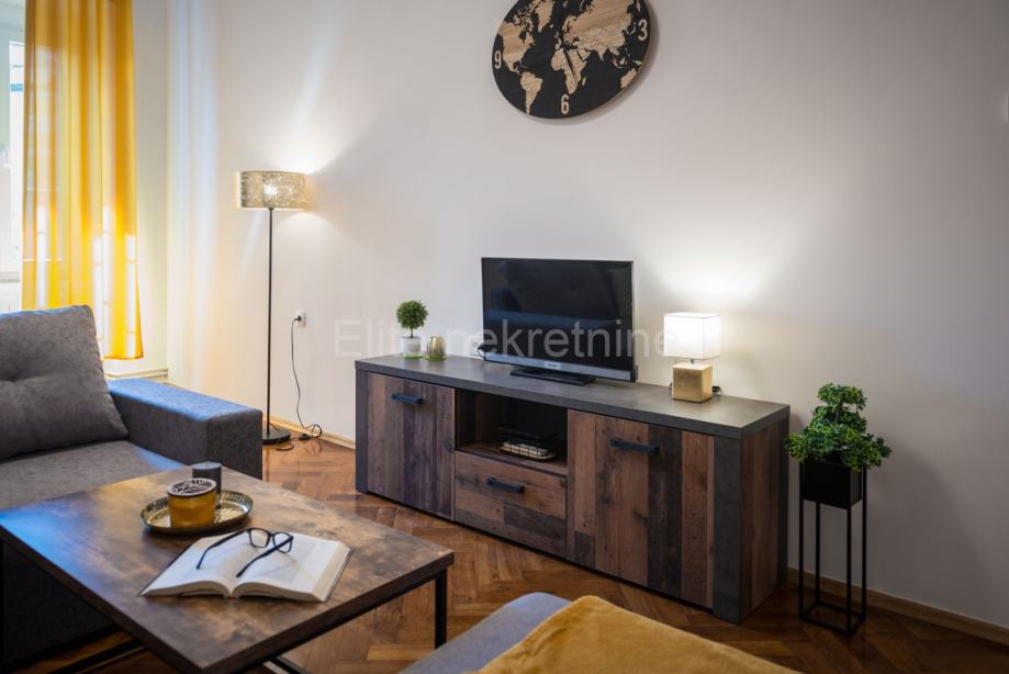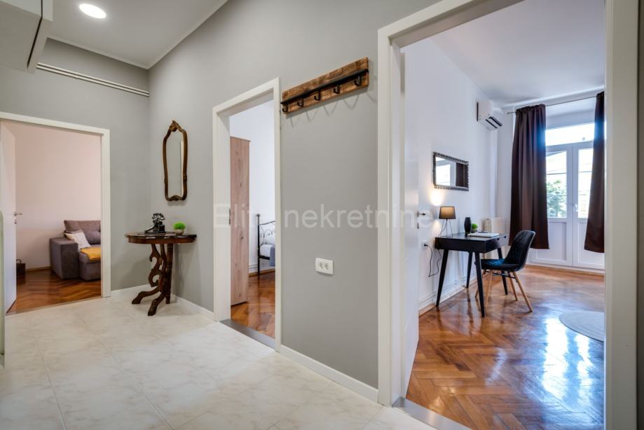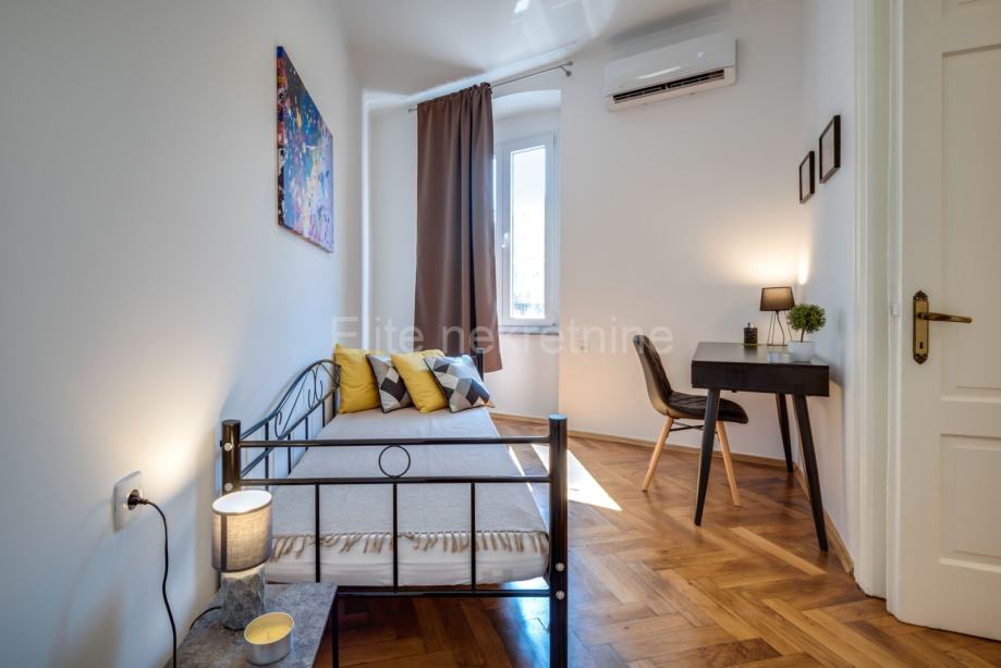 Iznajmljuje se moderno uređen, adaptiran i potpuno namješten stan u samom centru Rijeke. Smješten je na prvom katu, površine 96m2.