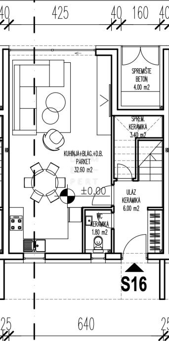 -Dnevni boravak, blagovaonica i kuhinja (32,60 m²)