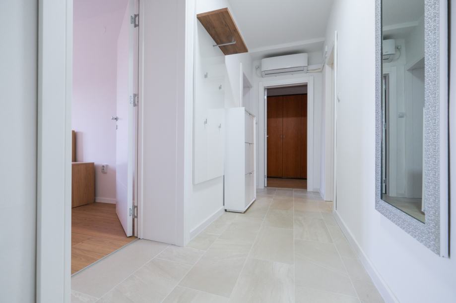 Stan je novouređen, a sastoji se od ulaznog dijela, kuhinje, izbe, dnevnog boravka, dvije spavaće sobe, kupaonice i loggie.