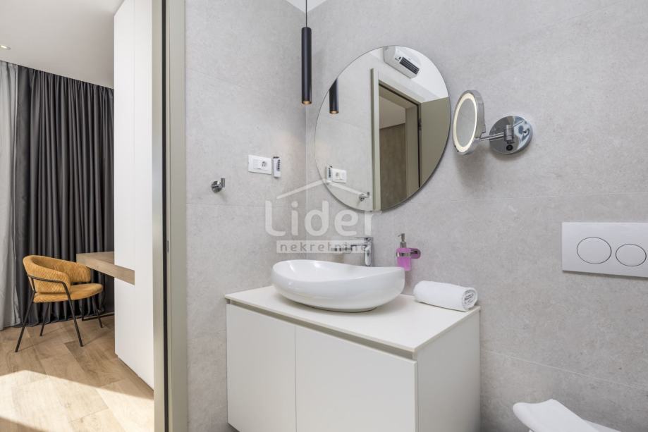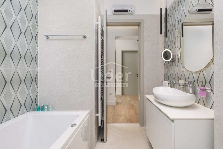 Grijanje i hlađenje riješeno je Mitsubishi klima uređajima u svim prostorijama, ukupno 5 kupaonica, visoki stropovi i veliki prozori. Dva prostrana balkona (južni s pogledom na Kvarner i sjeverni, intimniji) te dodatna zajednička terasa iznad stana. Sve tri jedinice imaju odvojena brojila struje i vode te mogućnost modularnog spajanja u jedan veliki luksuzni stan ili odvojenog korištenja za stanovanje i najam. Novi lift, mirna zgrada, vrhunska izolacija, drvarnica/ostava i trajno nezaštićen pogled čine ovu nekretninu iznimno rijetkom prilikom na tržištu.