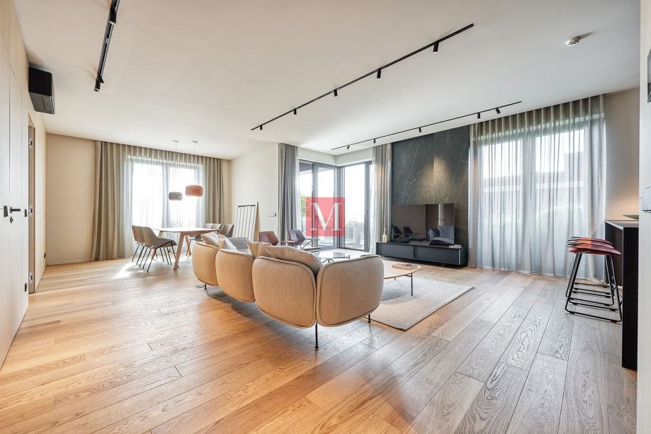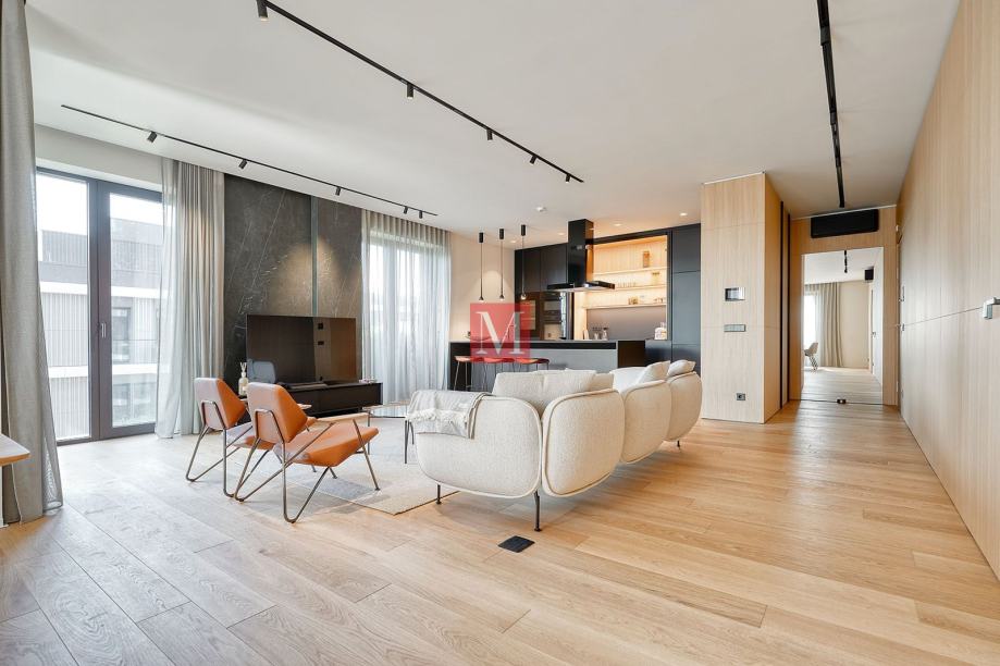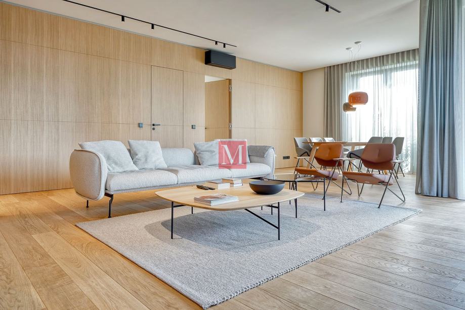 Ekskluzivan, dizajnerski uređen i nikad korišten trosoban stan s loggiom i duplom garažom na 5. katu luksuzne VMD novogradnje (2022.) Park Kneževa u Donjem gradu.