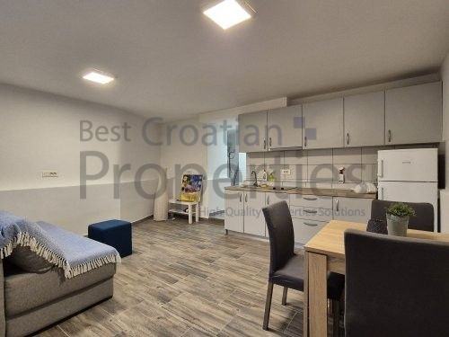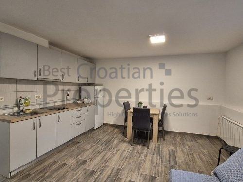 Prodaje se namješten, opremljena kuhinja, kupaona s tuš kabinom, protuprovalna vrata, portafon. Grijanje je centralno električno sa termostatom.