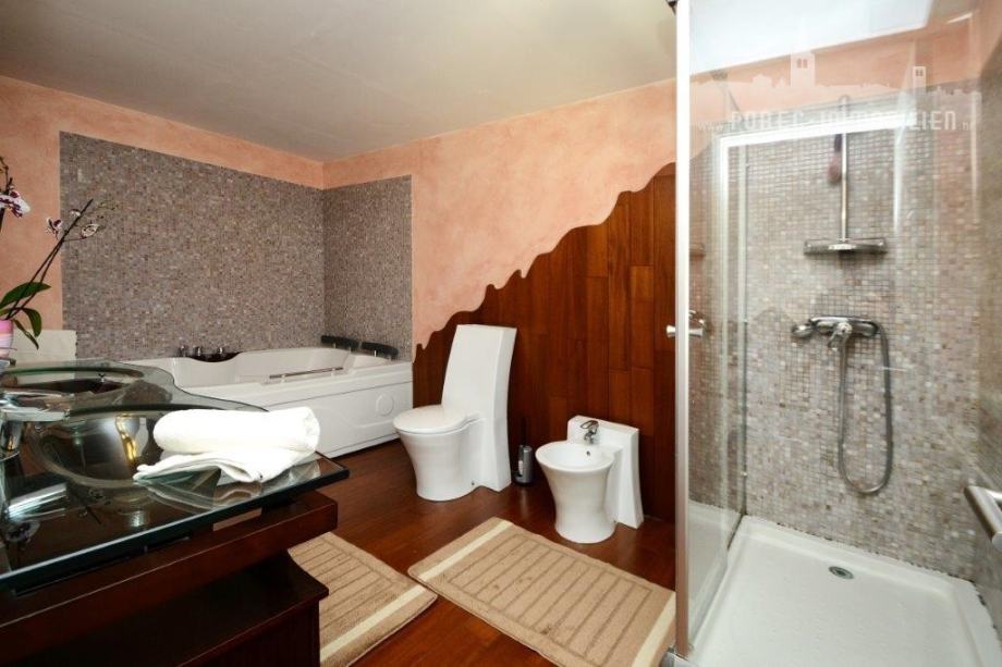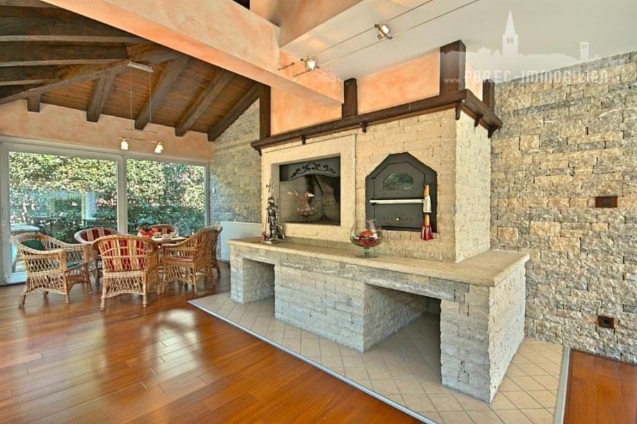 Iz dnevnog boravka se izlazi na lijepo uređeni vrt u kojemu se nalazi bazen od 60 m2.