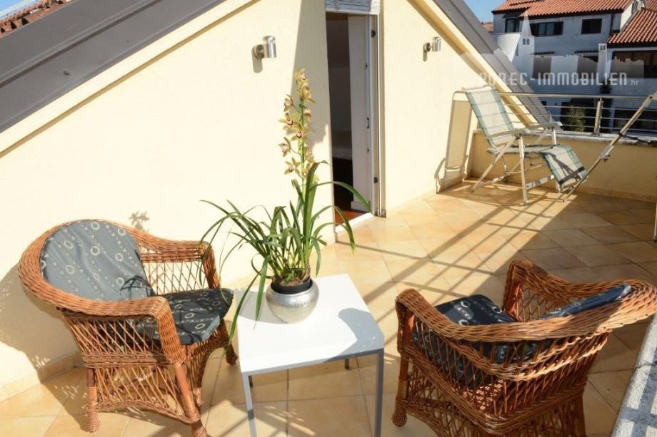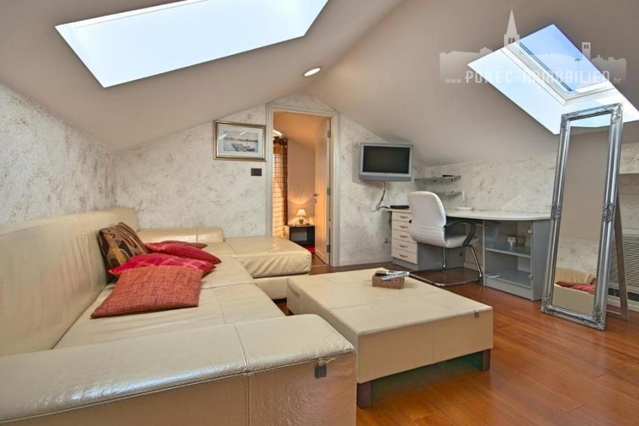 Na prvom katu se nalaze tri komforne spavaće sobe i tri kupaone, dok se na drugom katu ( potkrovlju) nalazi potpuno opremljeni studio apartman sa terasom iz koje se pruža pogled na more i na stari grad.