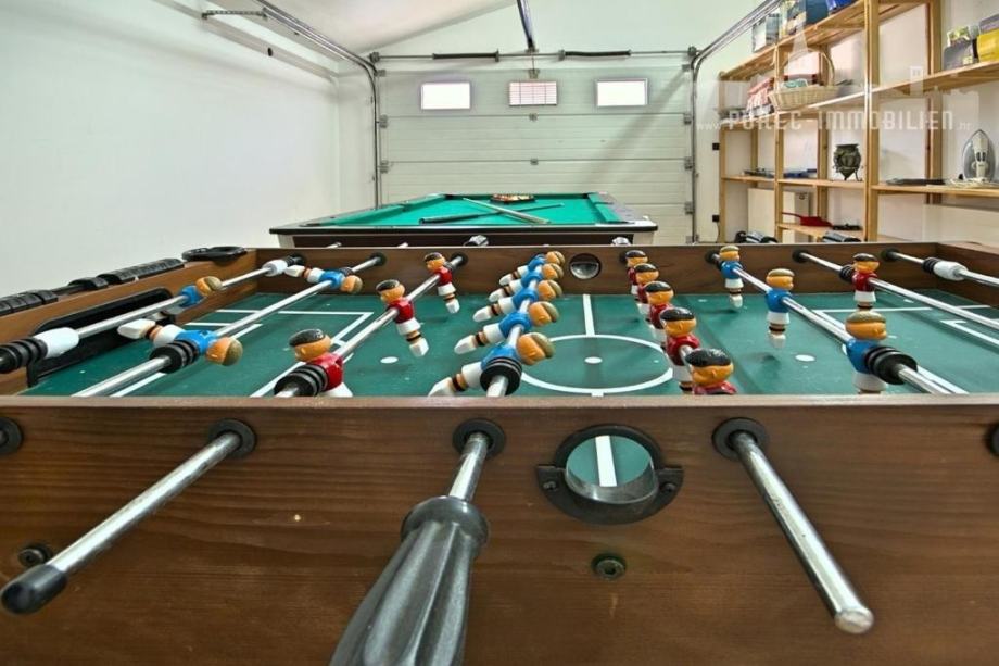 U nastavku prizemlja se nalazi još igraonica sa stolom za stolni nogomet i biljar .