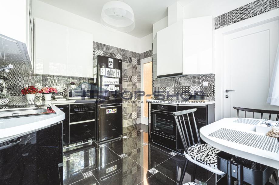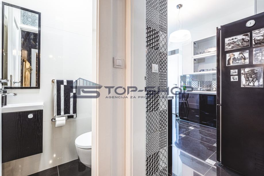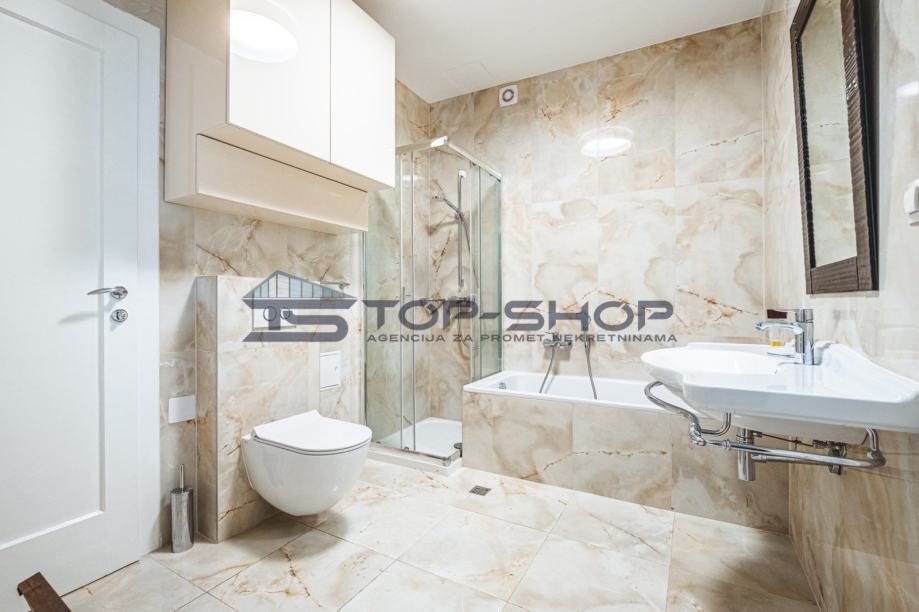 Nalazi se na izuzetnoj lokaciji u centru grada, a uz park Ribnjak s pogledom na katerdralu. Stan ima dva klima uređaja, protuprovalna vrata, perilicu posuđa, video portafon, električne rolete..