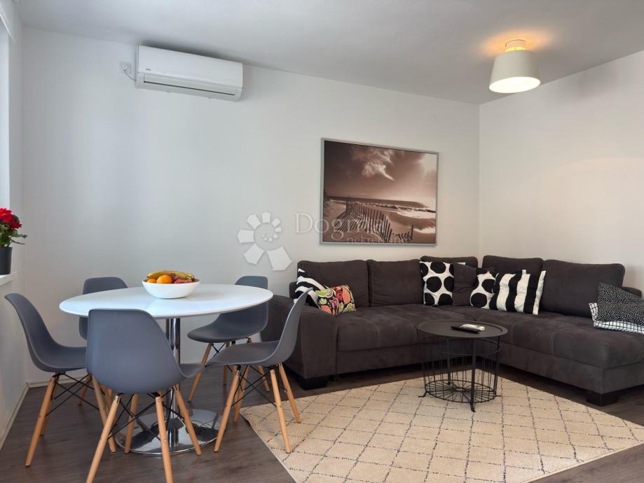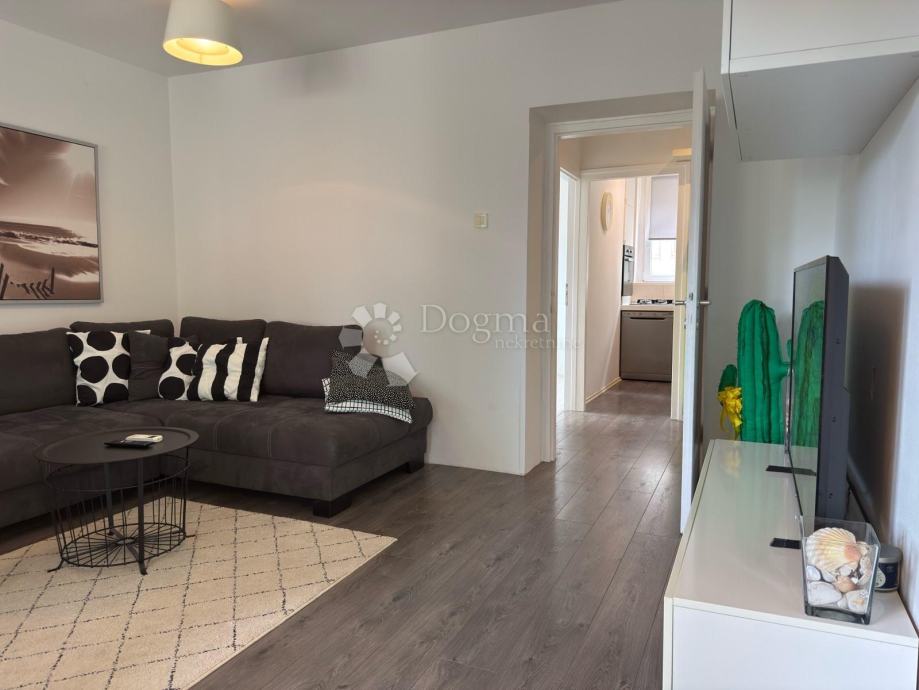Stan se sastoji od dvije spavaće sobe te prostranog i svijetlog dnevnog boravka s kutnom garniturom na razvlačenje, idealnog za ugodan svakodnevni boravak. Zahvaljujući orijentaciji na tri strane svijeta - istok, jug i zapad - stan obiluje prirodnim svjetlom tijekom cijelog dana, a dodatnu vrijednost pruža i ugodan balkon.