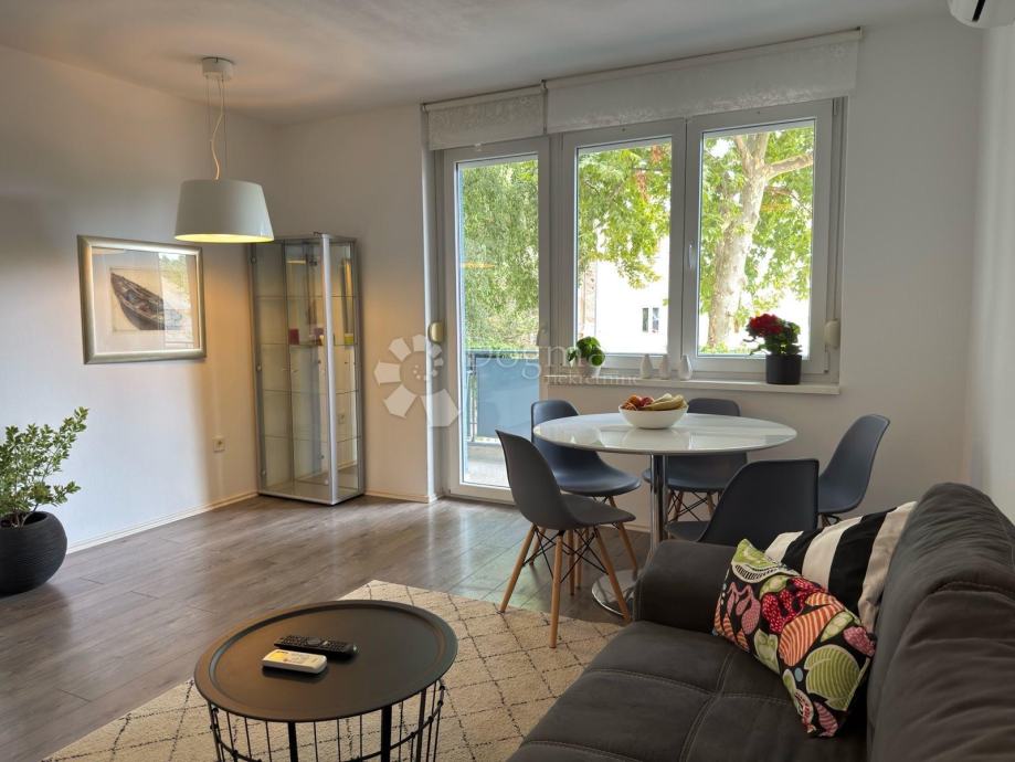 Iznajmljuje se moderno uređen i svježe renoviran stan na izuzetnoj lokaciji u samom centru Pule, smješten na prvom katu uredne stambene zgrade.