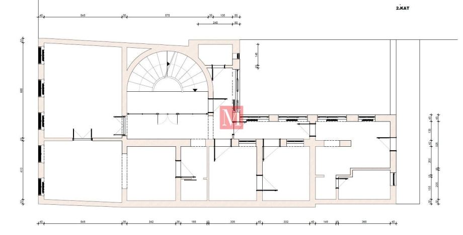 Objekt se sastoji od podruma, kružnog stubišta, te dva kata gdje se trenutno nalaze stanovi od cca 150 m2, potkrovlja, te balkona i lijepog vrta na dvorišnoj strani.