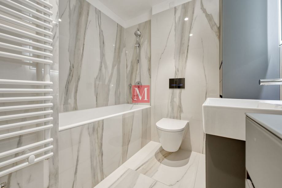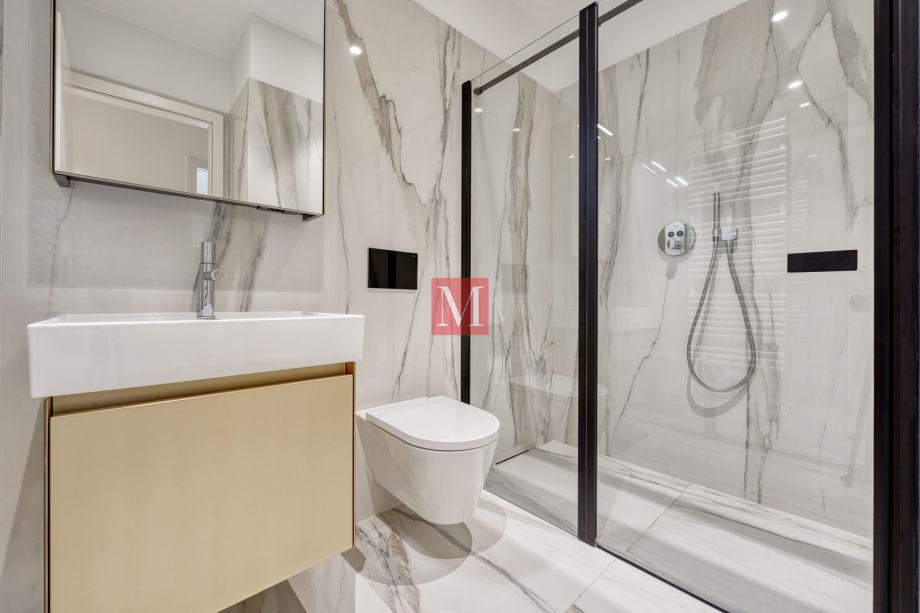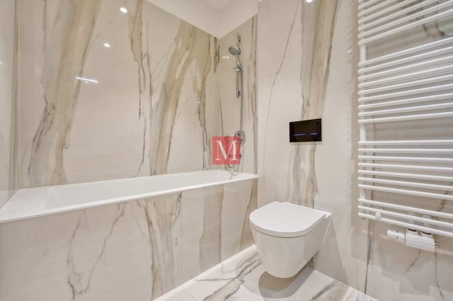 Oprema kupaonica od renomiranih proizvođača(Kerrock, Laufen, Huppe, Axor) s visoko kvalitetnim slavinama, kadama, walk in tuš sa pregradom od lamistal prozirnog stakla i zidnim tuš kanalicama, wc školjke i bide konzolnog tipa sa soft close spuštanjem daske