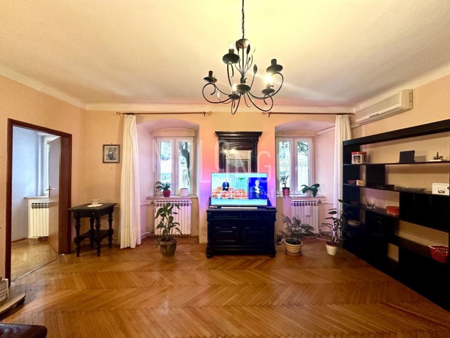 Ovaj stan kombinira povijesni šarm starije zgrade s modernim udobnostima, poput etažnog centralnog grijanja, čineći ga intrigantnim prostorom za život.