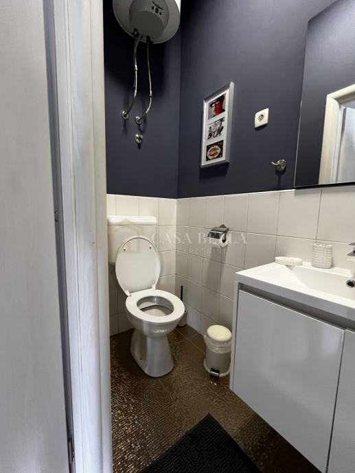 Sanitarni čvorovi su odvojeni za stambene jedinice, dok poslovni prostor također posjeduje vlastiti sanitarni čvor i pripadajuće spremište.