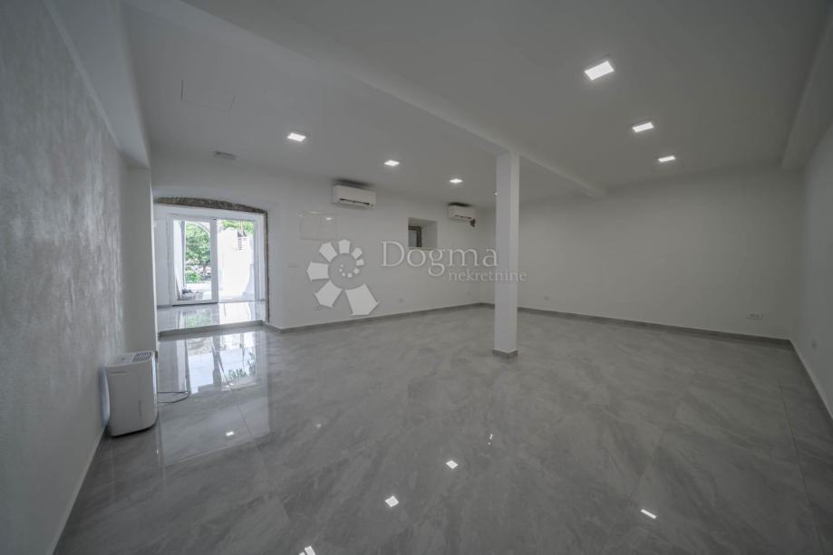 U prizemlju se nalazi reprezentativan poslovni prostor, u potpunosti uređen i spreman za tihu djelatnost. Prostor ima poseban ulaz i odličnu vidljivost s ulice, što ga čini pogodnim za ured, atelje ili showroom.