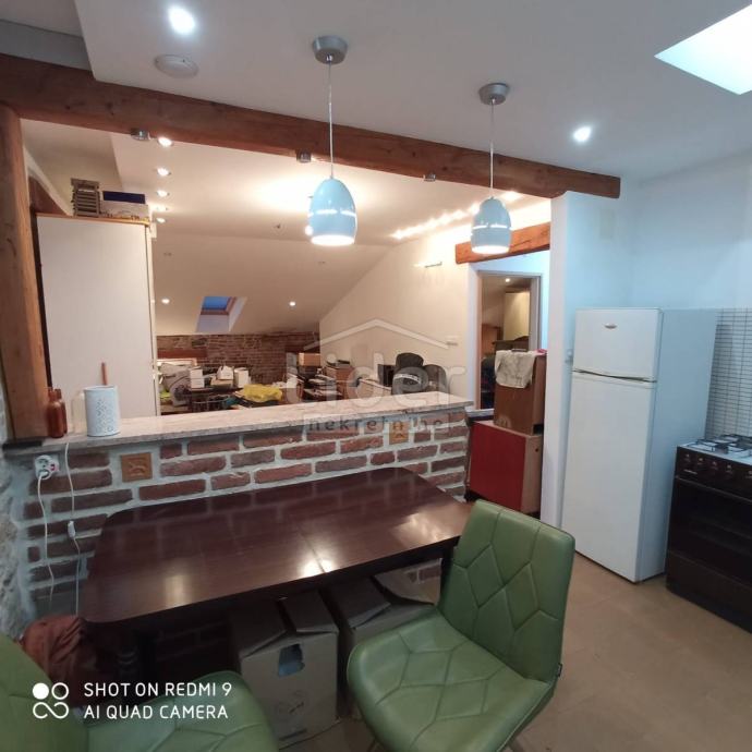 Nadomak Korza na ponudi je djelomično adaptiran stan u visokom potkrovlju. Po vlasničkom listu stan ima 98,87m2, u naravi tlocrtno 112m2.