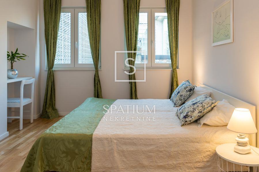 CENTAR, u ponudi imamo stan za najam na samom Korzu. Sastoji se od dvije spavaće sobe, kuhinje s blagovaonom, dnevnim boravkom i kupaone. Klima u svakoj sobi, podno grijanje u kupaoni. Potpuno namješten i opremljen uključujući i posuđe te posteljinu. Režije: struja 40-110€/mj, Internet 25€/mj.