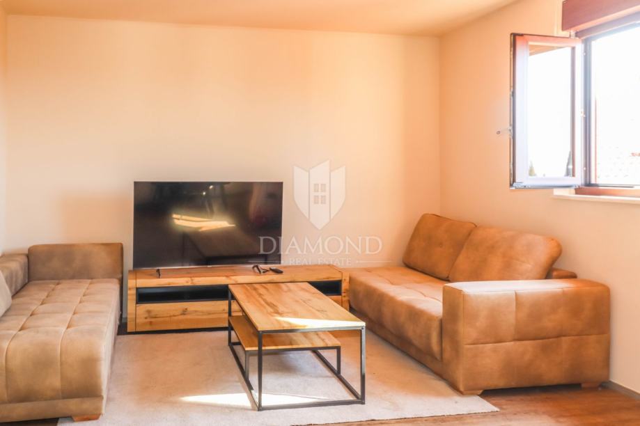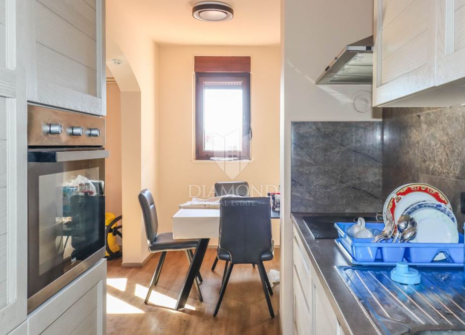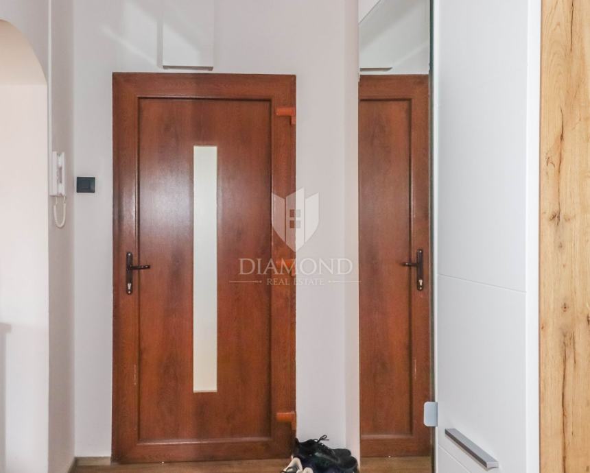 Prodaje se predivan stan na odličnoj lokaciji u Rovinju, u mirnom kvartu odmah uz centar, idealnom za život, odmor ili investiciju. Stan se nalazi na 5. katu stambene zgrade, ima čak 77 m2, a sastoji se od dvije spavaće sobe, hodnika, prostranog dnevnog boravka, kuhinje s blagovaonicom i moderno uređene kupaonice. Iz stana se pruža predivan pogled na more, a dodatnu vrijednost pruža velika terasa na korištenje, savršena za opuštanje i uživanje u zalascima sunca. Stan je potpuno renoviran prije dvije godine – promijenjene su instalacije struje i vode, zidovi, podovi, kupaonica i sav namještaj, tako da je odmah useljiv bez dodatnih ulaganja. Pripada mu i drvarnica, a ispred zgrade ima dovoljno parkirnih mjesta. Lokacija je savršena jer ste nadomak centra, ali izvan gužve, što ovo čini idealnim izborom za obitelj, vikend boravak ili turistički najam. Ne propustite ovu priliku – kontaktirajte nas čim prije!