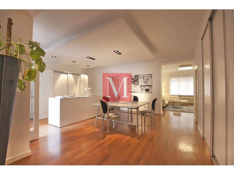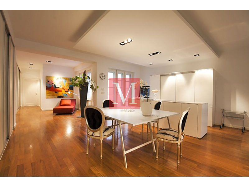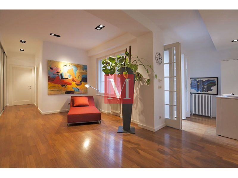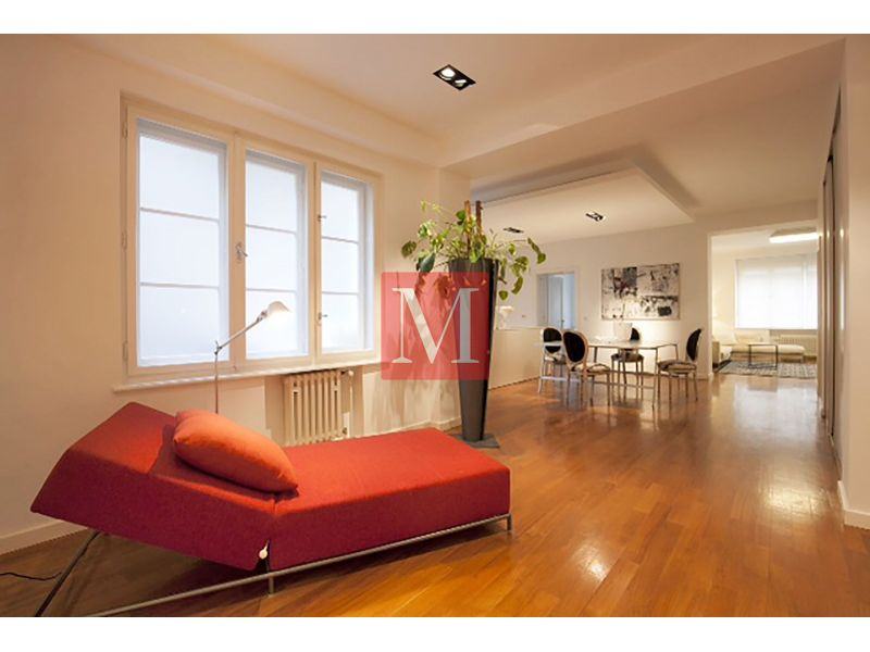 Ekskluzivan dizajnerski opremljen stan od 145 m2 na 1. (u naravi 2.) katu odlično održavane zgrade s liftom na atraktivnoj lokaciji u strogom centru grada u Mesničkoj ulici.