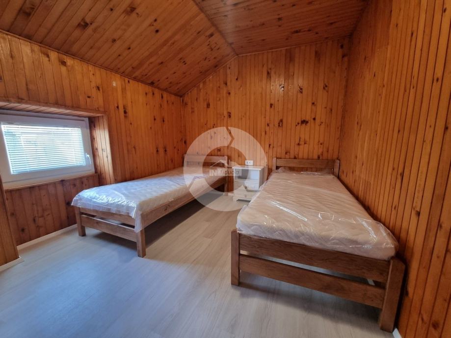 Prodaje se renovirana kamena kuća zadnja u nizu, u centru Tara, bez okućnice i terase! Sastoji se od prizemlja, 1. kata i visokog potrkovlja. U prizemlju se nalazi hodnik, kupaona, dnevni boravak sa blagovaonicom i kuhinjom. Stepenicama se odlazi na gornji kat gdje se nalazi još jedna kupaona i spavaća soba, dok se u visokom potrkovlju nalaze još dvije spavaće sobe (jedna veća i jedna manja). Kuća može smjestiti 6 osoba, i zato je idealna ili za dugoročni najam radnicima i obiteljima, ili za turistički najam. Kuća nema svoju okućnicu ni parking, no uz kuću postoji malo zemljište u vlasništvu Općine. Kuća se prodaje kompletno namještena kao na fotografijama.