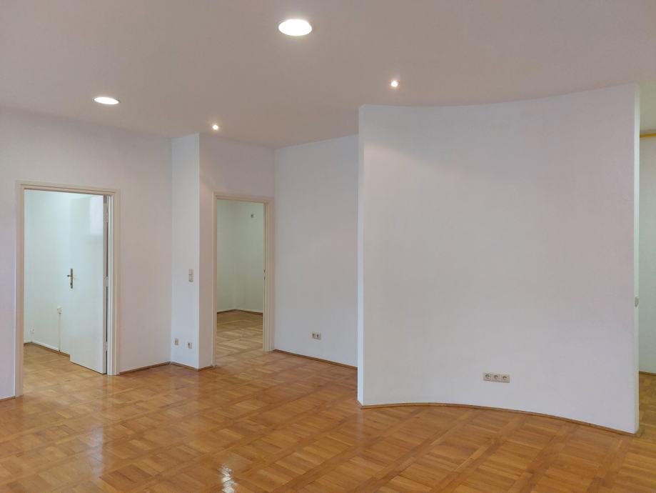 Sastoji se od 3 sobe, od toga 1 velika open space i 2 manje sobe. Sve sobe imaju prirodno vanjsko svijetlo. Stan ima opremljenu čajnu kuhinju. Uz stan dolazi i ostava površine 5m2 u prizemlju zgrade.