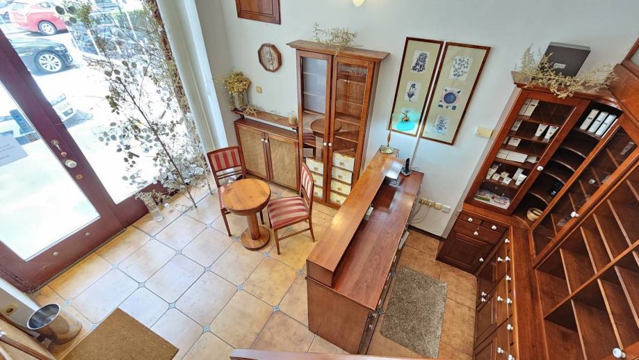 Idealan je za trgovinu specijaliziranih proizvoda ili neku uslužnu djelatnost. Stilski je uređen te je sve rađeno po narudžbi i po mjeri, te je tako maksimalno iskorišten potencijal prostora. Veliki izlog bez obzira na malu kvadraturu prostora osigurava dobru vidljivost te dovoljno dnevnog svjetla.