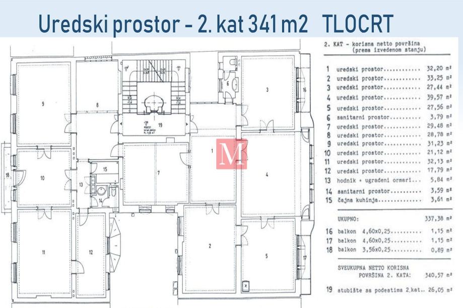 Sastoji se od: predprostora, 11 uredskih prostora, 2 kupaonice, čajne kuhinje i 3 balkona.
