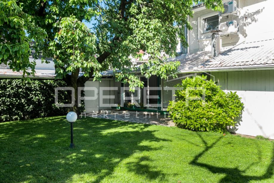 Mogućnost kupnje donje etaže, tj. kuće gdje vlasnici žive. Odlična zelena lokacija u centru grada s predivnom vrtnom oazom.