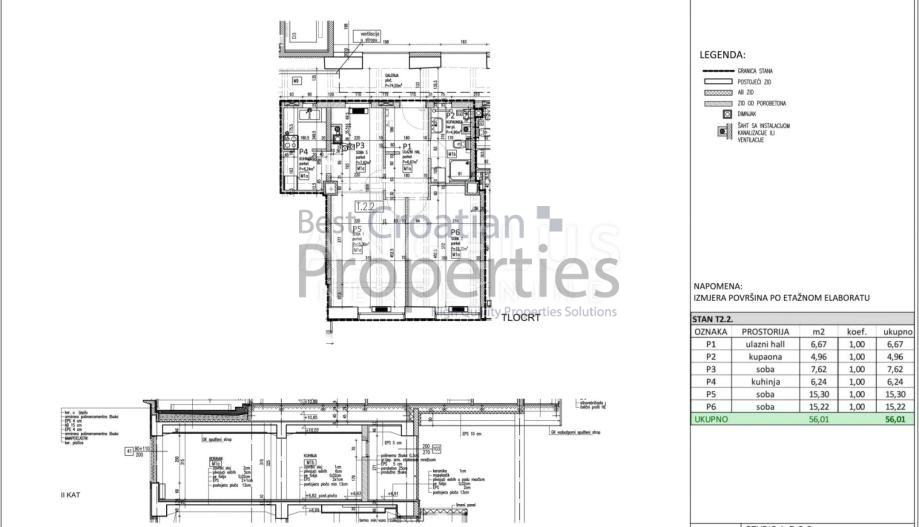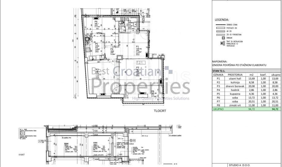 Prostor se sastoji od pet prostorija, četiri sanitarna čvora, čajne kuhinje, prostorije za sastanke, prostor za arhivu, terase, loggie. Uz prostor se i iznajmljuju tri garažna parkirna mjesta.