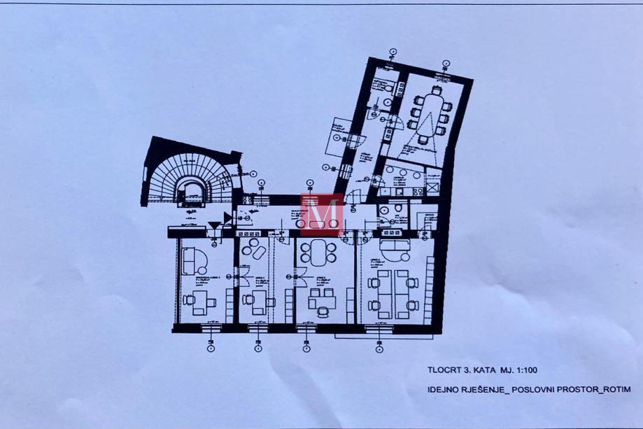 Prostor se sastoji od 4 sobe, arhive, kupaonice i gostinjskog toaleta.