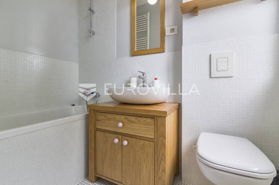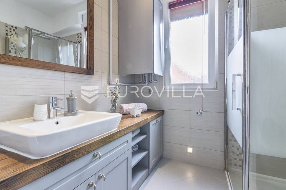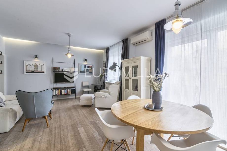 Zvonimirova Street, a beautiful two bedroom apartment of 82 m2. It consists of a hall, guest toilet, 2 bathrooms, 2 bedrooms, kitchen, living room, dining room, walk-in wardrobe, storage room and two balconies. It also have outside parking space. Ideal location, close to all essential contents....