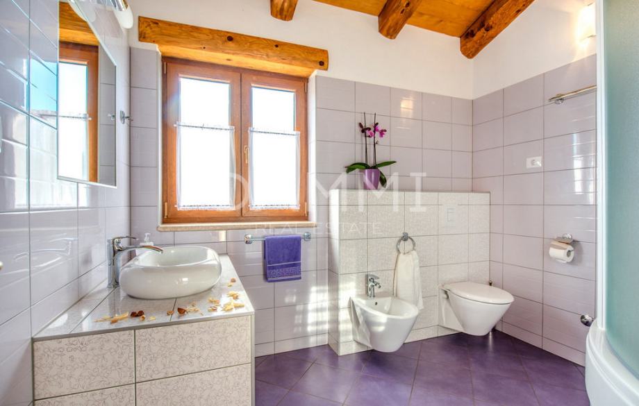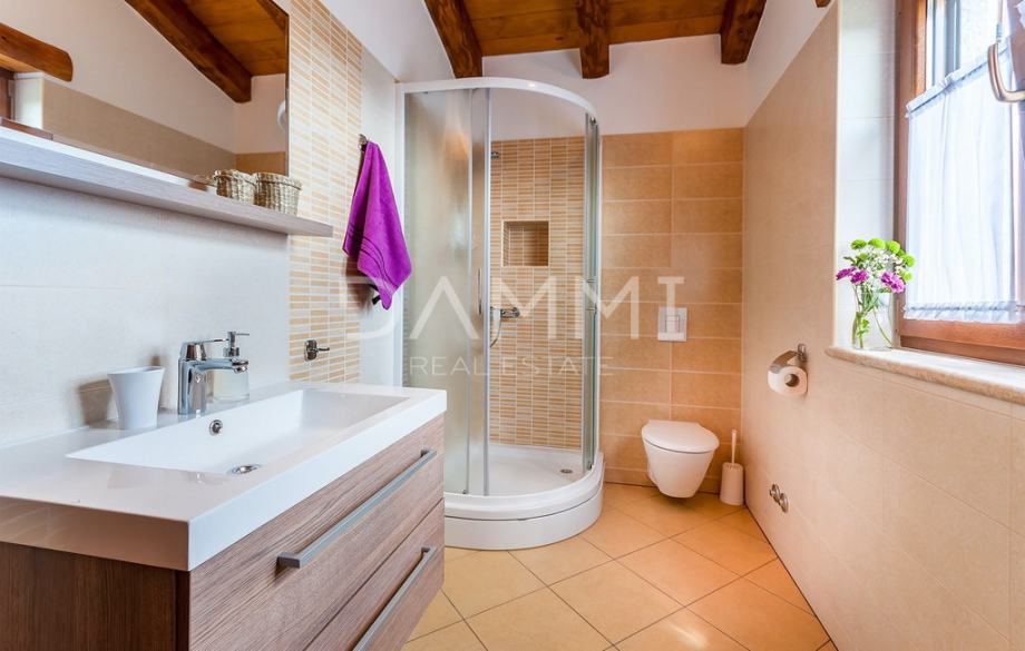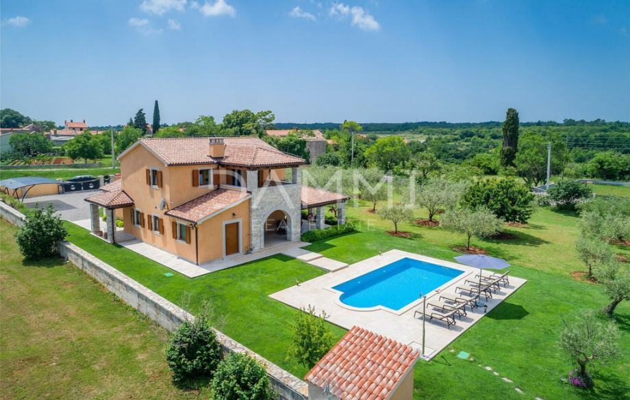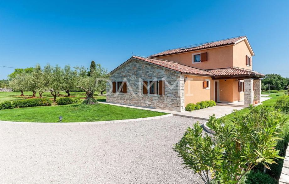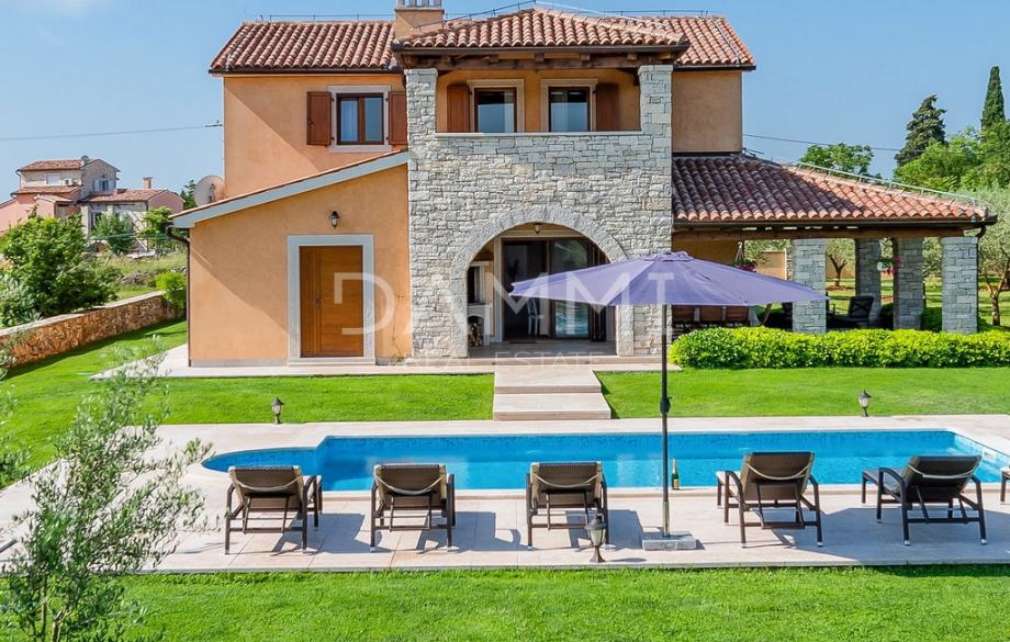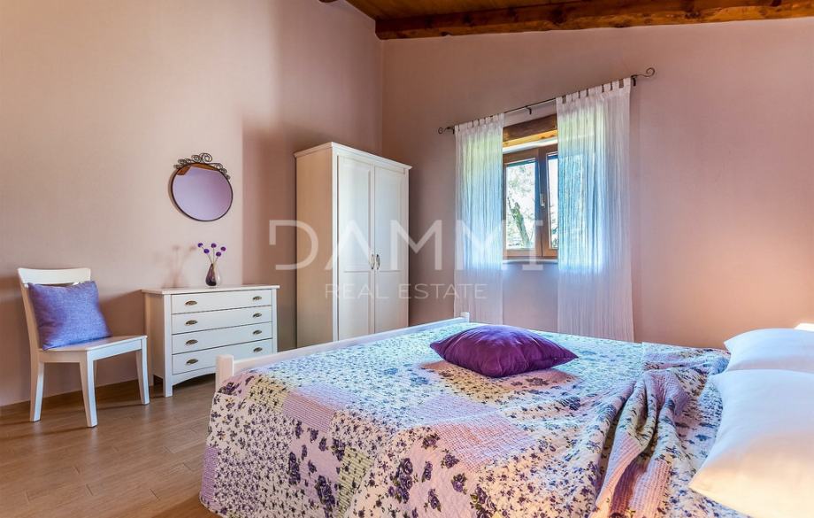 Prodajemo rustikalnu vilu izgrađenu 2013. godine koju krasi prekrasno prirodno okruženje. Smještena je na kraju malog sela u centralnoj Istri. Vila nudi luksuzni smještaj i iskustvo visoke razine privatnosti. Vila je izgrađena od prirodnih materijala sa sistemom osvjetljenja koji je pažljivo dizajniran da nudi najviše komfora i ugodnog doživljaja u svakom trenutku. Kuhinja, toalet, soba s dva jednokrevetna ležaja i kupaonica, soba s bračnim krevetom i privatnom kupaonicom, blagovaonica i dnevni boravak smješteni su u prizemlju s krasnim pogledom na bazen. Na prvom katu nalaze se dvije sobe s bračnim krevetima i dvije kupaonice. Kuća je kompletno klimatizirana u svim prostorijama, te je opremljena podnim grijanjem i vrhunskom PVC stolarijom u imitaciji drva.
