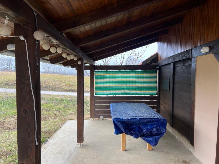 Ima spavaću sobu, kuhinju, podrum, šupu i veliku terasu za odmor.