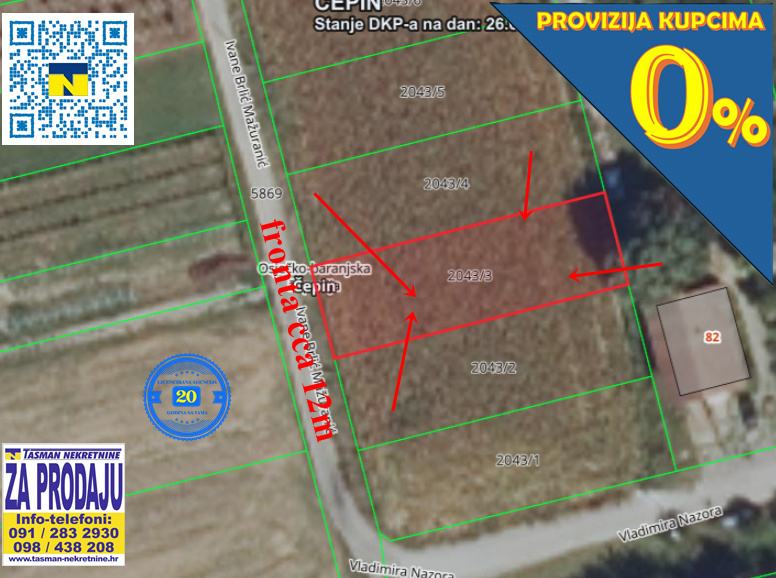 GRAĐEVINSKE PARCELE NA MIRNOJ STAMBENOJ LOKACIJI U ČEPINU!!! ULICA IVANE BRLIĆ MAŽURANIĆ!! POVRŠINA 466 M2!!! FRONTA CCA 12m!! DOSTUPNA KOMPLETNA KOMUNALNA INFRASTRUKTURA (VODA, STRUJA, ODVODNJA)!!! MIRNA ZONA GRADNJE!!! VLASNIK DAJE KUPCU I IDEJNO RJEŠENJE ZA IZGRADNJU STAMBENE KUĆE!!
